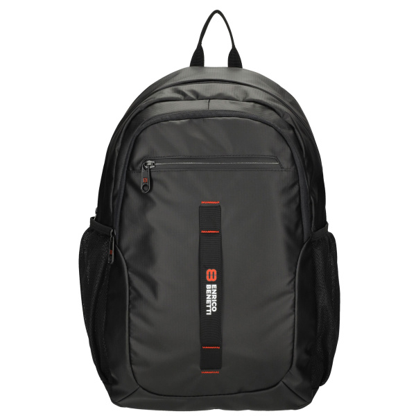 Moderní textilní batoh z nové kolekce ENRICO BENETTI má nadčasový design, trendy barvy, anatomicky tvarovaná záda s prodyšnou vrstvou "Airflow", polstrované popruhy přes rameno, vnitřní kapsu na notebook 15", v přední části organizér na klíče, mobil a propisky. Má dvě komory vybavené spoustou přihrádek. Ten je velice lehký, a díky nově koncipovanému polyesteru také voděodolný. V přední části je přihrádka se zipem, kapsička na cokoliv, síťovaná přihrádka na doklady a místo na dvě pera. Poslední přihrádka se zipem je na její vnější straně. Po stranách batohu jsou dvě síťované kapsy na láhve s pitím.