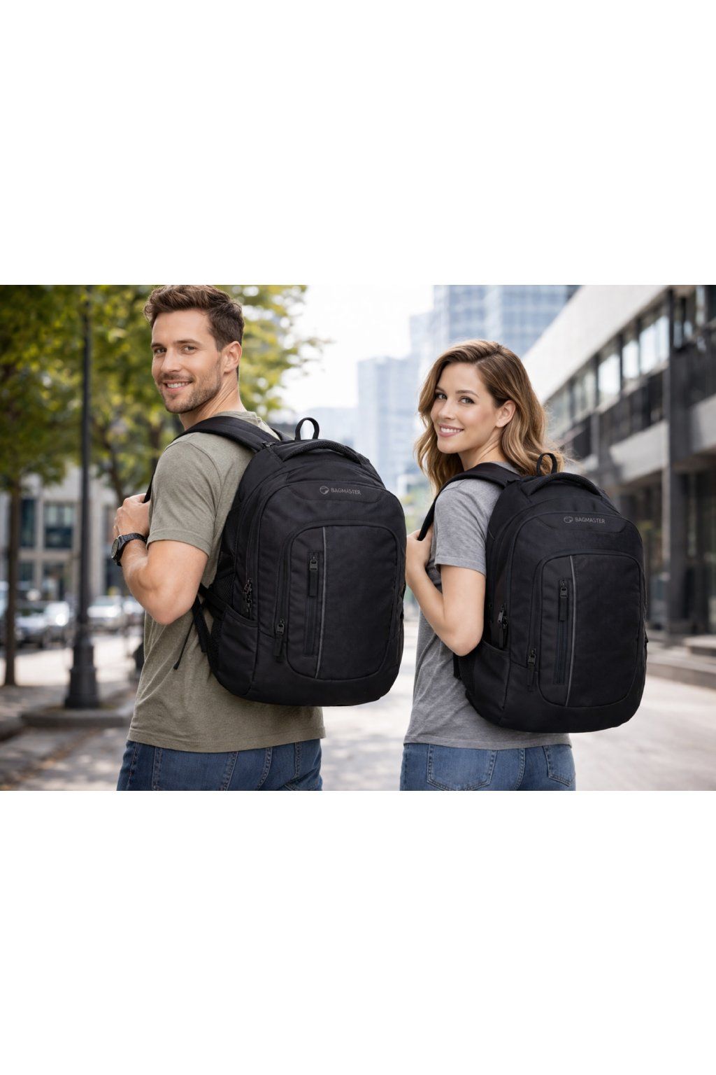 Batoh na notebook (13"-14"-15") vhodný do práce, kanceláře, školy i na každodenní nošení. Moderní business batoh pro muže, ženy i studenty s dostatkem prostoru na notebook, dokumenty, učebnice a osobní věci. Elegantní městský batoh nabízí pohodlné nošení, praktické členění a stylový vzhled. Černý dvoukomorový urban batoh s polstrovanou kapsou na notebook, organizérem, měkkou kapsou na brýle a dalšími menšími kapsičkami.