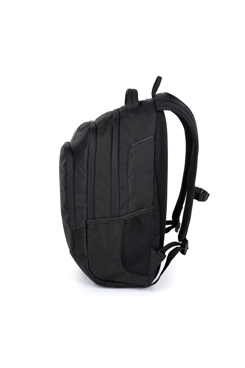 - V zadní je polstrovaná přepážka na notebook. Nošení laptopu na zádech je, na rozdíl od příručních obalů do ruky nebo na rameno, pohodlnější a bezpečnější.