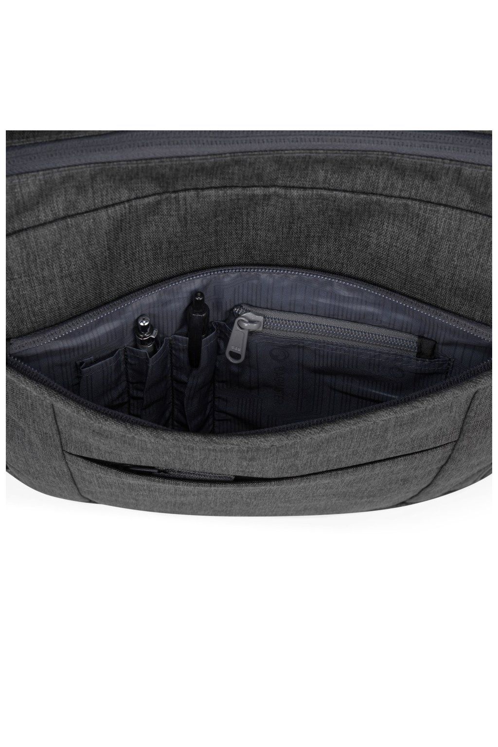 - Prostřední kapsa na zip má organizér na mobil a psací potřeby.