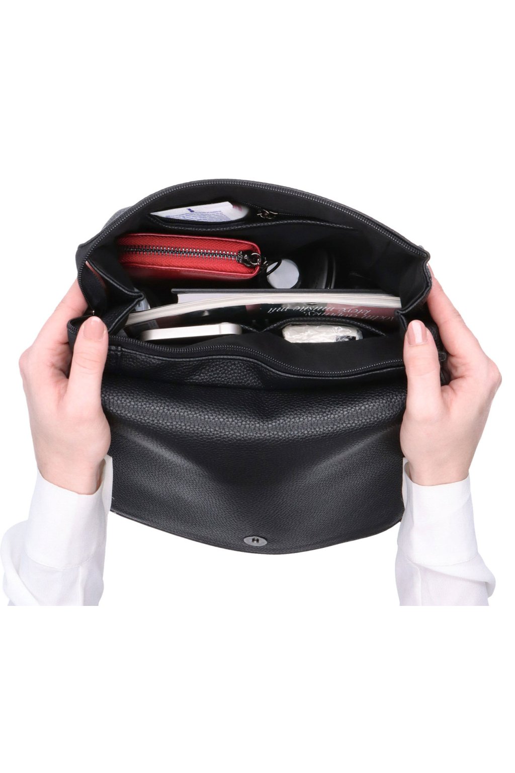- jednokomorový střih dámského batohu s velkou prostornou kapsou, do které lze umístit i dokumenty formátu A4