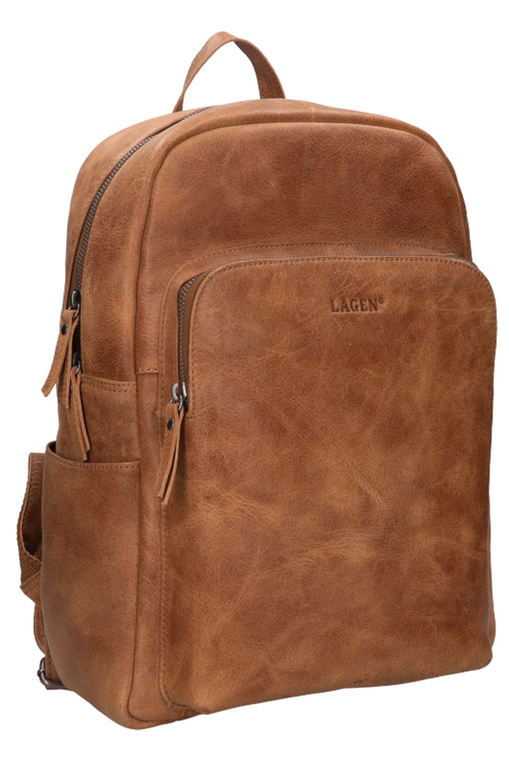 Kožený městský batoh z nové kolekce holandské značky LAGEN, která je zárukou jak kvalitního zpracování tak i kvalitou použitého materiálů. Kožený batoh v elegantní světlé hnědé barvě, plně nahrazuje tašku. Do tohoto koženého batůžku lze velmi pohodlně umístit diář i dokumenty formátu A4 , deštník, doklady, peněženku a také notebook (34 x 29 cm - 14"-15") a tablet / iPad (20 x 27 cm) jiné drobnosti denní potřeby. Městský kožený batoh má nastavitelné ramenní popruhy, které výborně sedí na zádech. Kožený batůžek má dostatečně velké a pevné poutko k přenášení batohu v ruce. Na přední části batohu je velká kapsička uzavíratelná zipem. Tento originální kožený batoh lze celý v horní části zapnout zipem.