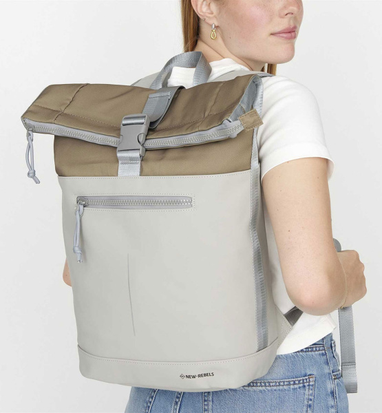 Moderní batoh holandské značky NEW REBELS z nejnovější kolekce ,,FERRON,, v trendy šedé barvě má nadčasový design a délkou nastavitelné popruhy přes rameno. Je totiž vyroben z Polyuretanu, tedy materiálu, který je vodotěsný a velmi dobře udržovatelný. Jedná se o tkaninu potaženou hladkým polyesterem, který vytváří dojem, že je batoh pogumovaný. Vnitřní část městského, nebo studentského batohu, tvoří dostatečně velký prostor, do kterého lze umístit i notebook 15" , složky formátu A4, mobil, doklady, peněženku deštník a jiné drobnosti denní potřeby. Na čelní straně je přihrádka s výrazným zipem, druhá taková pak na zadní straně batohu. Celý batoh je chráněn proti vykradení zipem. Celkový design doplňuje pevné ucho v horní části.