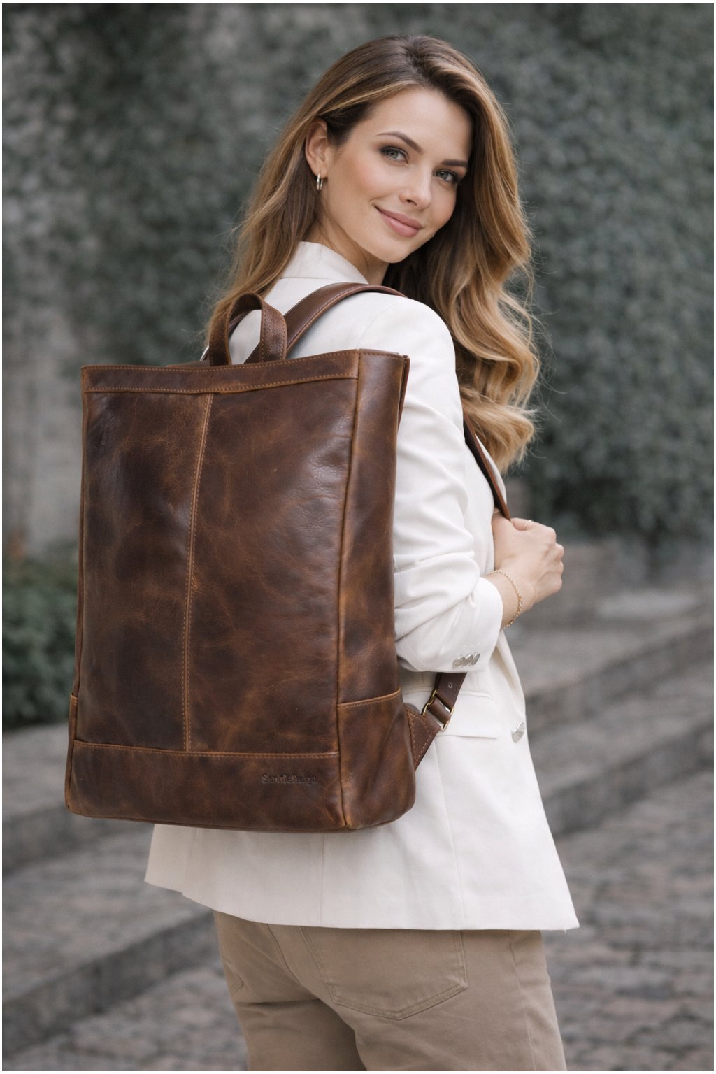 - samozřejmosti městského koženého batohu jsou nastavitelné popruhy přes rameno