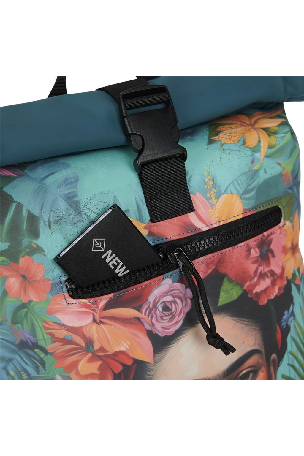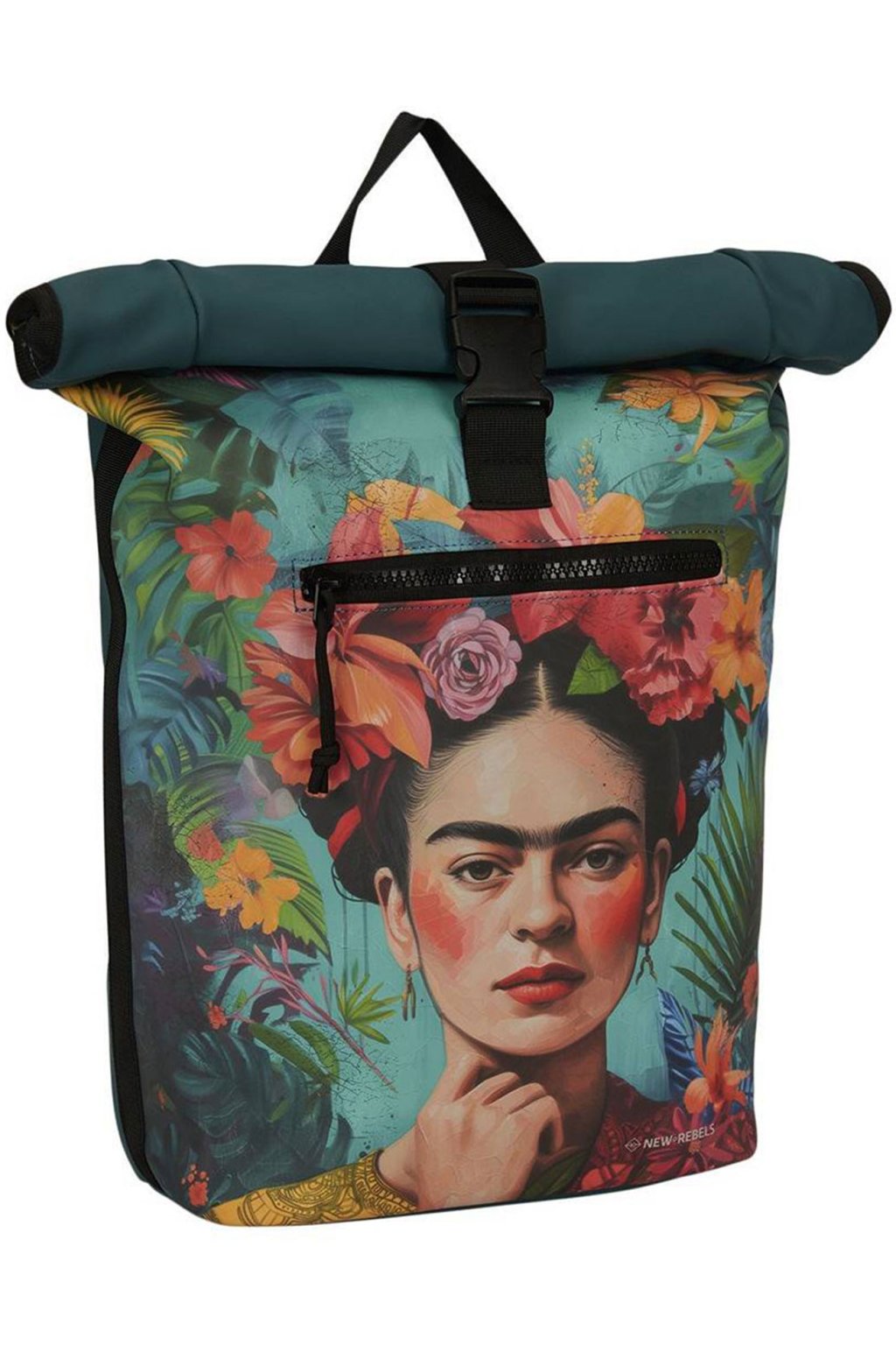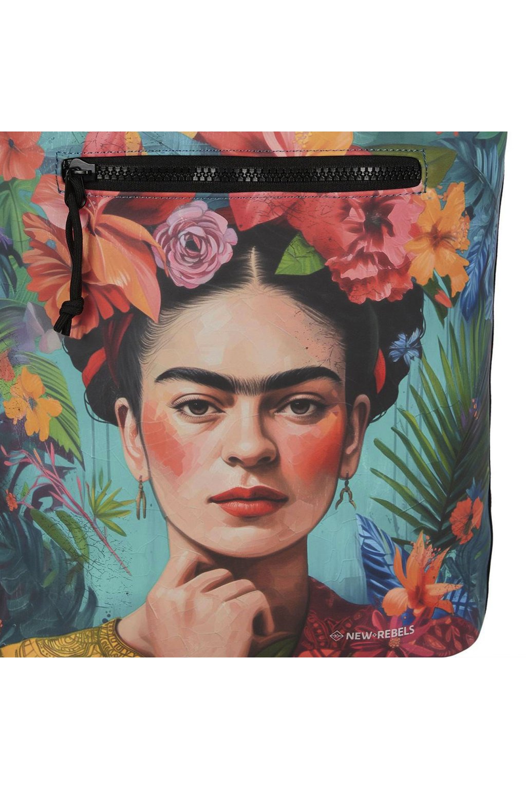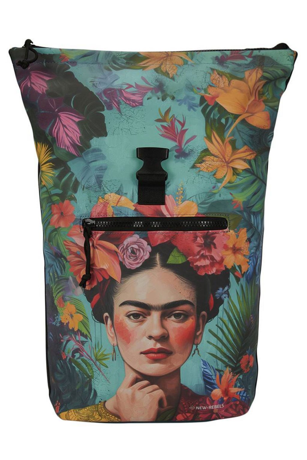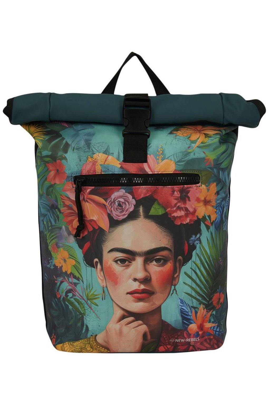 Představujeme Vám trendy batoh holandské značky New Rebels, z úžasné kolekce Mark Art. Slavný autoportrét v barevném květinovém pojetí je další novinka od New Rebels. je zatím poslední novinka od New Rebels. Je totiž vyroben z Tarpaulinu, tedy materiálu, který je vodotěsný a velmi dobře udržovatelný. Jedná se o tkaninu potaženou hladkým polyesterem, který vytváří dojem, že je batoh pogumovaný. Vnitřní část městského, nebo studentského batohu, tvoří dostatečně velký prostor, do kterého lze umístit i notebook 15" , složky formátu A4, mobil, doklady, peněženku deštník a jiné drobnosti denní potřeby. Na čelní straně je přihrádka s výrazným zipem, zadní strana batohu je vyztužená a vyztužené jsou i popruhy přes rameno. Celý batoh je chráněn proti vykradení zipem. Celkový design doplňuje pevné ucho v horní části.