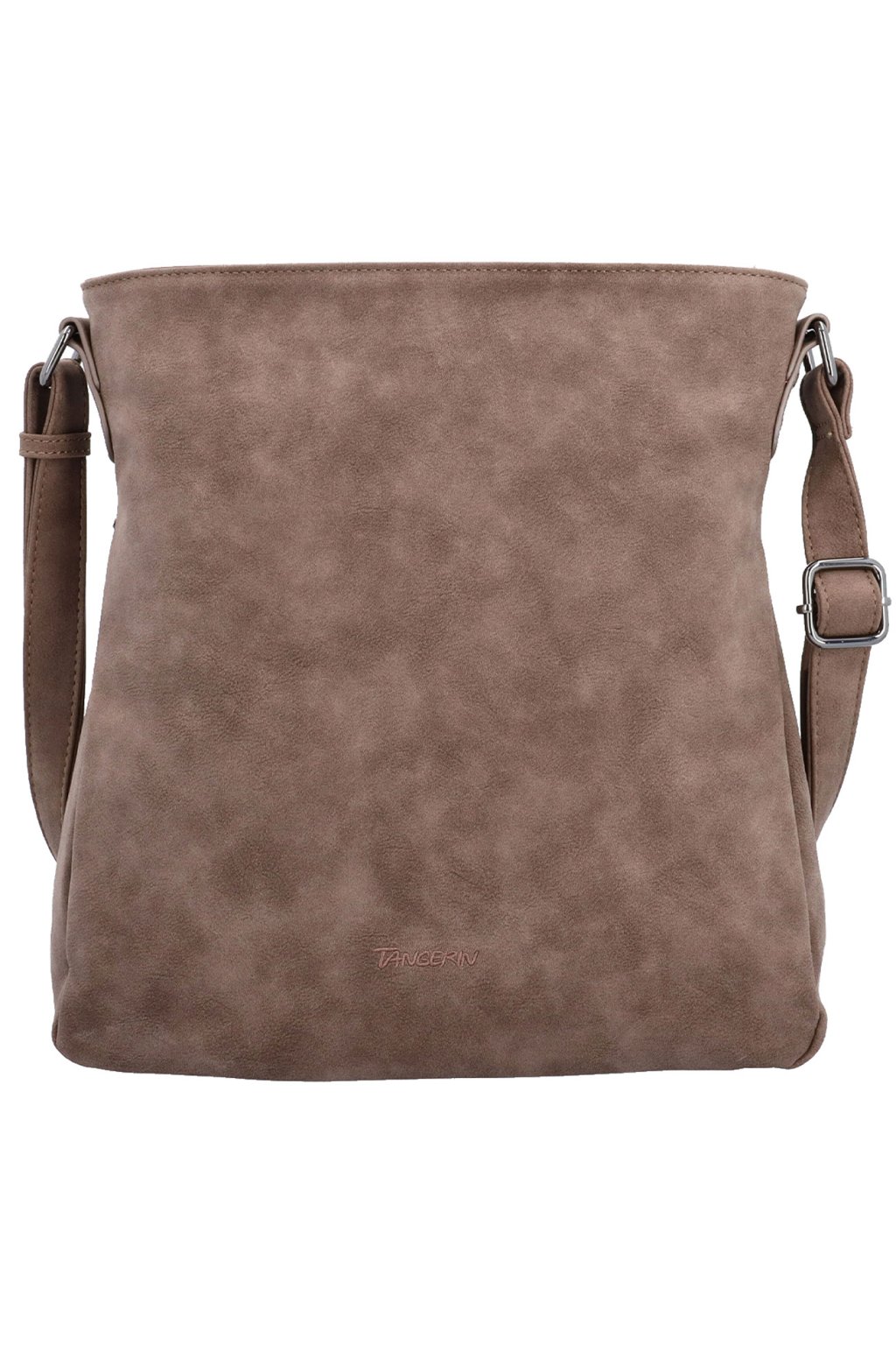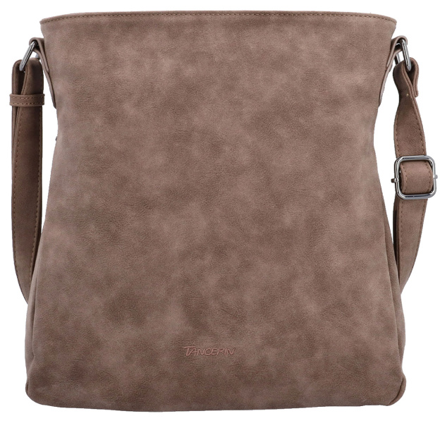 DÁMSKÁ ,,crossbody,, KABELKA přes rameno značky TANGERIN. Tato značka je zárukou kvality. Tato dámská kabelka je vyrobena z kvalitní matné eko-kůže v trendy hnědé barvě. Hnědá dámská kabelka je charakteristická především svým velmi trendy designem, nadčasovou eleganci, ale především svou praktičností. Velkou výhodou kabelky je její velký vnitřní prostor, do kterého lze pohodlně umístit formát A4. Skvělý vnitřní prostor kabelky Vám umožní umístit si zde Vaše doklady, peněženku, klíče, mobil, deštník a ostatní drobností denní potřeby. Díky nastavitelnému popruhu můžete tašku nosit přes rameno, ale také ležérně křížem přes tělo, díky tomu se tak stane tato ,,crossbody,, dámská kabelka přes rameno naprosto ideálním a nepostradatelným společníkem na Vaše cesty autem, vlakem, busem či letadlem. Zadní díl hnědé kabelky zdobí kapsička na zip. Všechny kabelky s popruhem přes rameno této značky jsou z důvodu bezpečnosti v horní části opatřeny zipem.