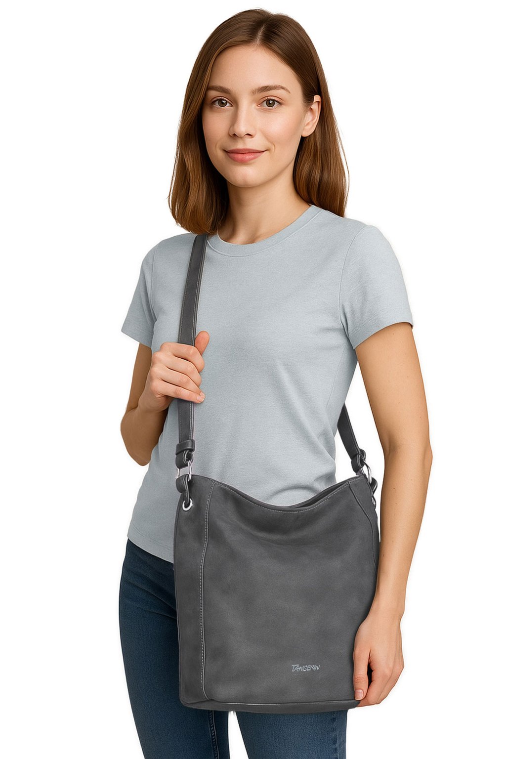 DÁMSKÁ ,,crossbody,, KABELKA přes rameno značky TANGERIN. Tato značka je zárukou kvality. Tato dámská kabelka je vyrobena z kvalitní matné eko-kůže v trendy modré barvě. Modrá dámská kabelka je charakteristická především svým velmi trendy designem, nadčasovou eleganci, ale především svou praktičností. Velkou výhodou kabelky je její velký vnitřní prostor, do kterého lze pohodlně umístit formát A4. Skvělý vnitřní prostor kabelky Vám umožní umístit si zde Vaše doklady, peněženku, klíče, mobil, deštník a ostatní drobností denní potřeby. Díky nastavitelnému popruhu můžete tašku nosit přes rameno, ale také ležérně křížem přes tělo, díky tomu se tak stane tato ,,crossbody,, dámská kabelka přes rameno naprosto ideálním a nepostradatelným společníkem na Vaše cesty autem, vlakem, busem či letadlem. Zadní díl modré kabelky zdobí kapsička na zip. Všechny kabelky s popruhem přes rameno této značky jsou z důvodu bezpečnosti v horní části opatřeny zipem.
