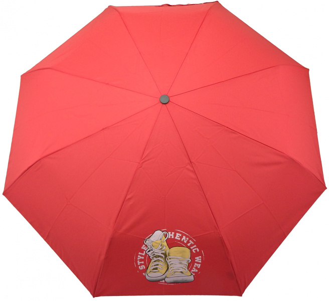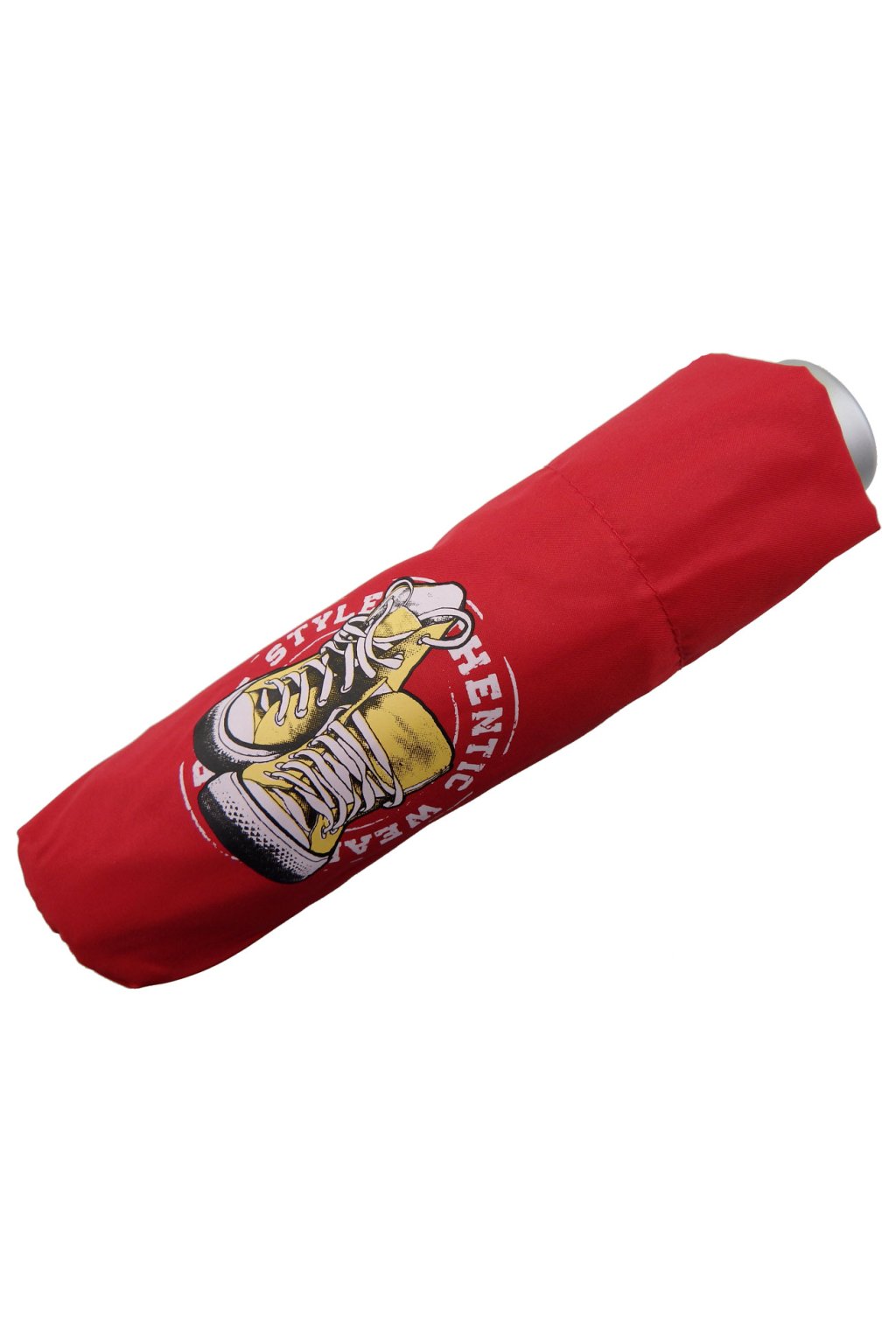 - dětský deštník v červené barvě má trendy designový vzor tenisek na okraji