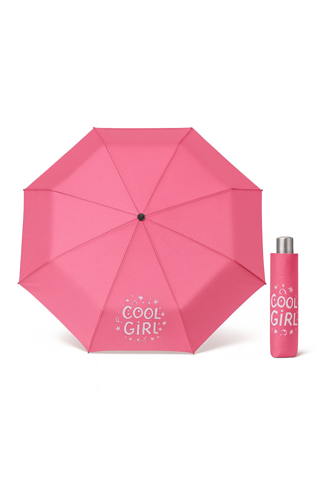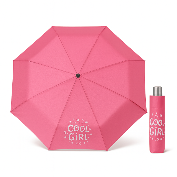 Dětský skládací deštník v růžové barvě s nápisem COOL GIRL