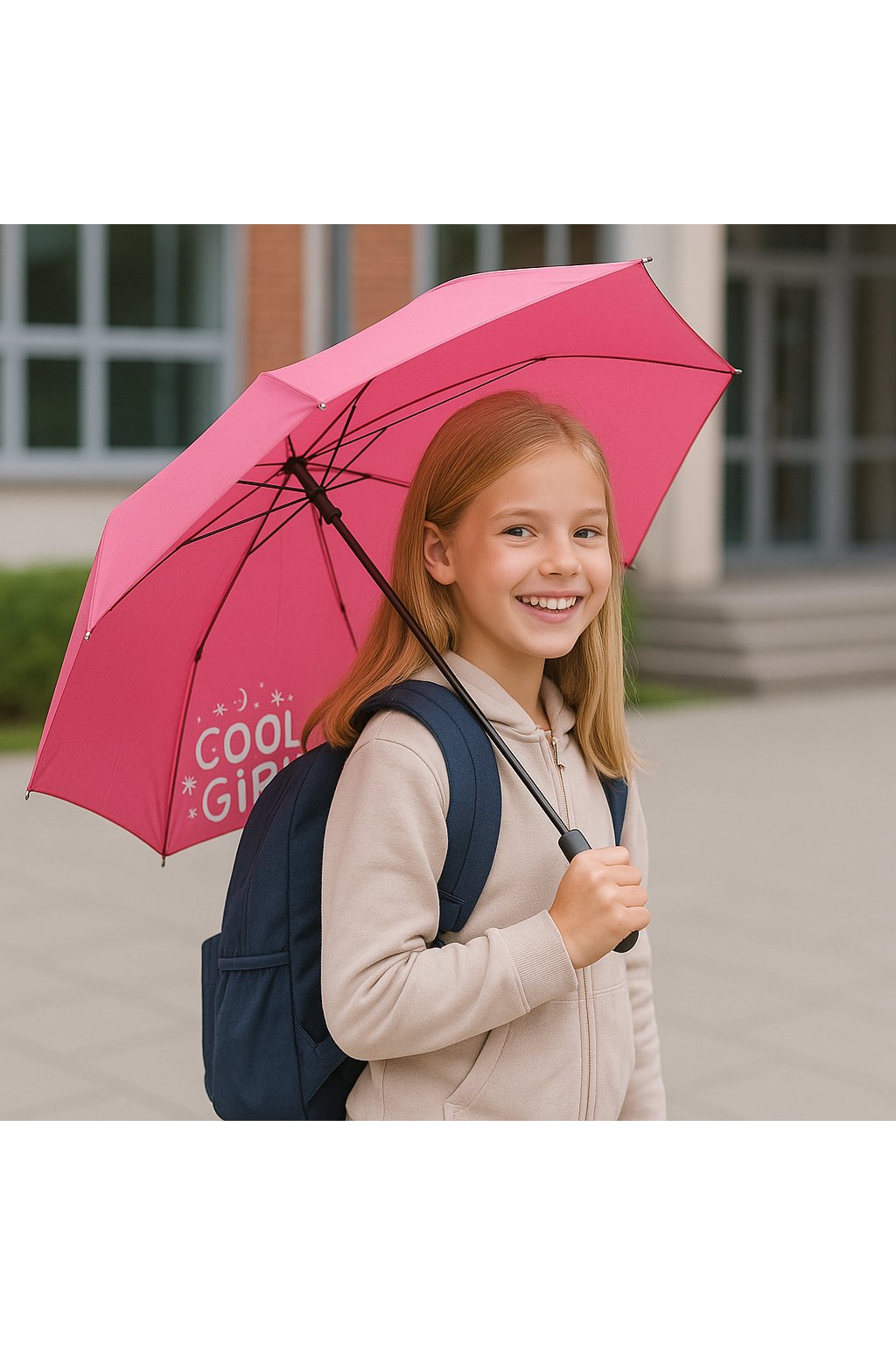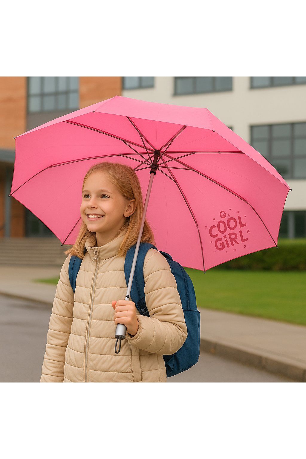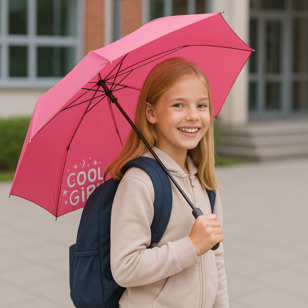 - dětský deštník v růžové barvě má trendy designový s nápisem COOL GIRL