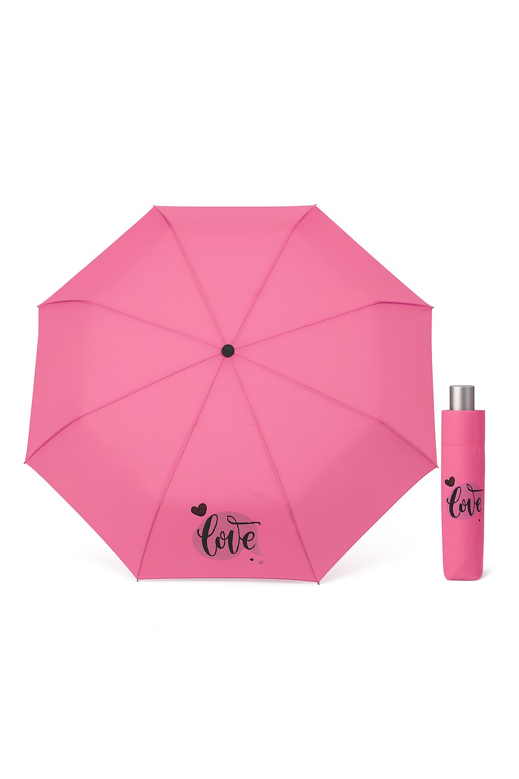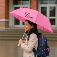 Dětský skládací deštník v růžové barvě se nápisem love