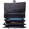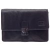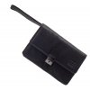 Elegantní pánská kožená příruční taška - etue na doklady v trendy černé barvě s klopou a zámečkem přes celou vrchní část, vnitřní část tvoří 3 prostorné, členěné komory na peněženku, doklady, mobil, klíče, taška má dostatečně dlouhé poutko na ruku a kapsičkou na zip na své zadní části.