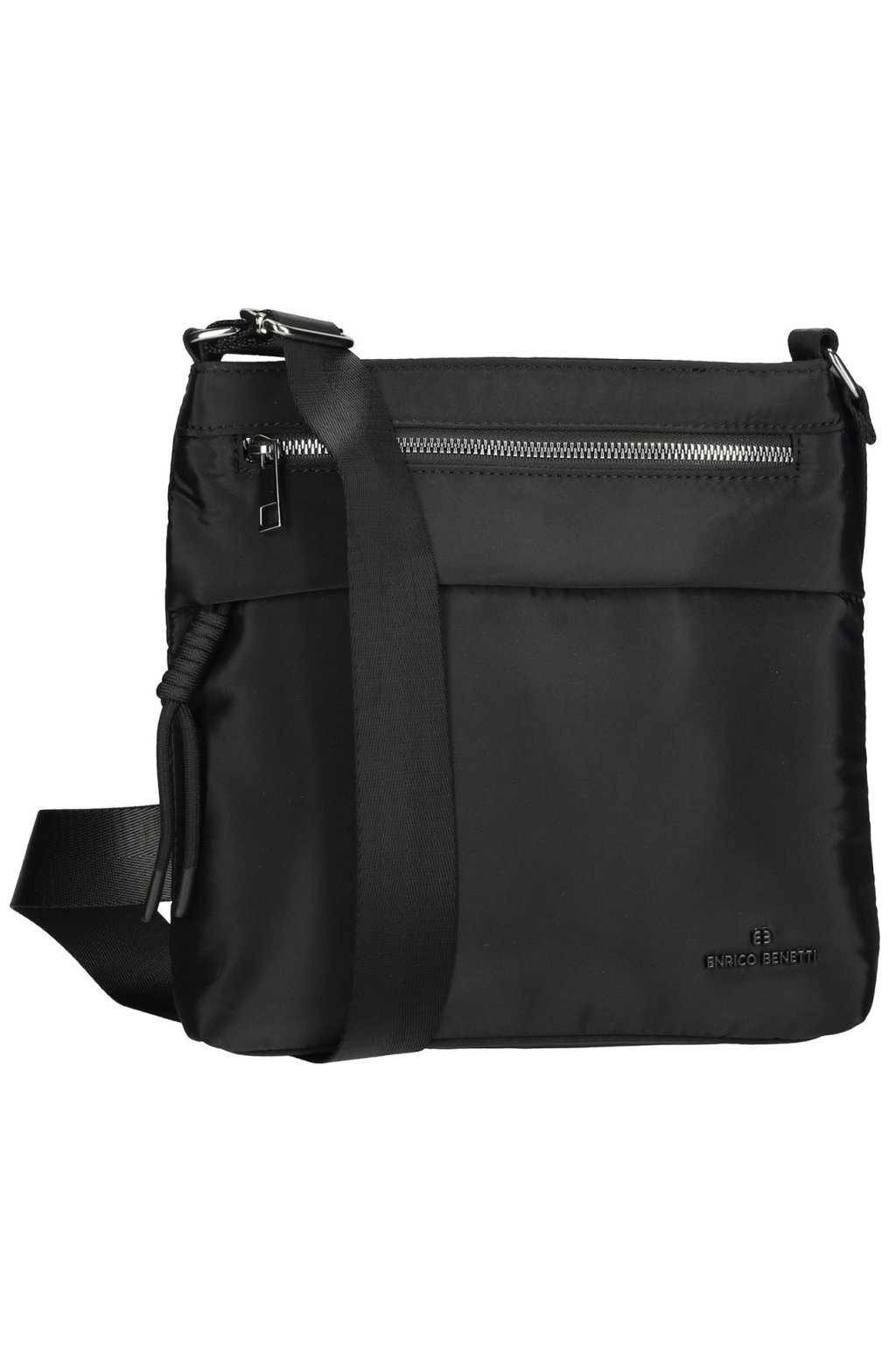 Moderní nylonová ,,crossbody,, kabelka v černé barvě z kolekce ,,ENRICO BENETTI,, . Kabelka má textilní úpravu a mezi zákaznicemi je tolik oblíbená pro svou praktičnost a pohodlí. Uvnitř kabelky najdete organizér na doklady a mobil. Na předním i zadním dílu textilní dámské kabelky je praktická kapsička na zip. Textilní dámská kabelka má dostatečně dlouhý nastavitelný popruh přes rameno, díky kterému lze kabelku nosit nejen přes rameno, ale také ležérně křížem přes tělo. Celá kabelka se uzavírá zipem.