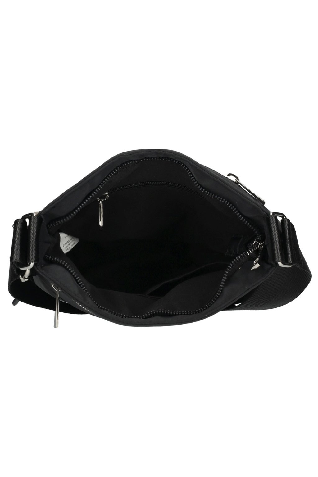DÁMSKÁ TEXTILNÍ ,,crossbody,, KABELKA přes rameno od značky ENRICO BENETTI, která je zárukou vysoké kvality. Dámská kabelka je vyrobena z nylonu v černé barvě. Dámská ,,crossbody,, kabelka je charakteristická především svým velmi trendy designem, nadčasovou eleganci, ale především svou praktičností. Skvělý vnitřní prostor kabelky Vám umožní umístit si zde Vaše doklady, peněženku, klíče, mobil a ostatní drobnosti denní potřeby. Díky nastavitelnému popruhu můžete kabelku nosit přes rameno, ale také ležérně křížem přes tělo. Na přední i zadním dílu kabelky je praktická kapsička uzavíratelná zipem. Kabelka se tak stane naprosto ideálním a nepostradatelným společníkem na Vaše cesty. Dámská textilní kabelka se celá ve své horní části uzavírá zipem.