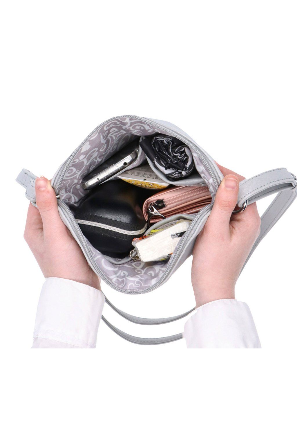 DÁMSKÁ ,,crossbody,, KABELKA přes rameno značky TANGERIN. Tato značka je zárukou kvality. Tato dámská kabelka je vyrobena z kvalitní matné eko-kůže v trendy světle šedé barvě. Dámská kabelka je charakteristická především svým velmi trendy designem, nadčasovou eleganci, ale především svou praktičností. Velkou výhodou kabelky je její velký vnitřní prostor, do kterého lze pohodlně umístit formát A5. Skvělý vnitřní prostor kabelky Vám umožní umístit si zde Vaše doklady, peněženku, klíče, mobil, deštník a ostatní drobností denní potřeby. Díky nastavitelnému popruhu můžete tašku nosit přes rameno, ale také ležérně křížem přes tělo, díky tomu se tak stane tato ,,crossbody,, dámská kabelka přes rameno naprosto ideálním a nepostradatelným společníkem na Vaše cesty autem, vlakem, busem či letadlem. Zadní díl kabelky zdobí kapsička na zip. Všechny kabelky s popruhem přes rameno této značky jsou z důvodu bezpečnosti v horní části opatřeny zipem.