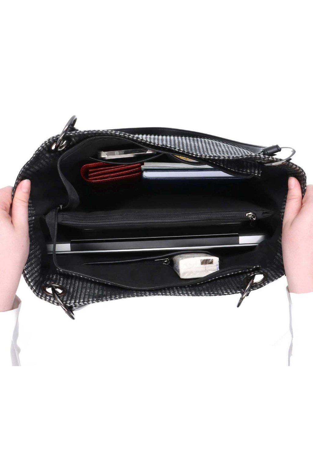 - kabelka je vyrobena z velmi kvalitní eko-kůže v stříbrno-černé barvě, která jen umocňuje její elegantní vzhled
