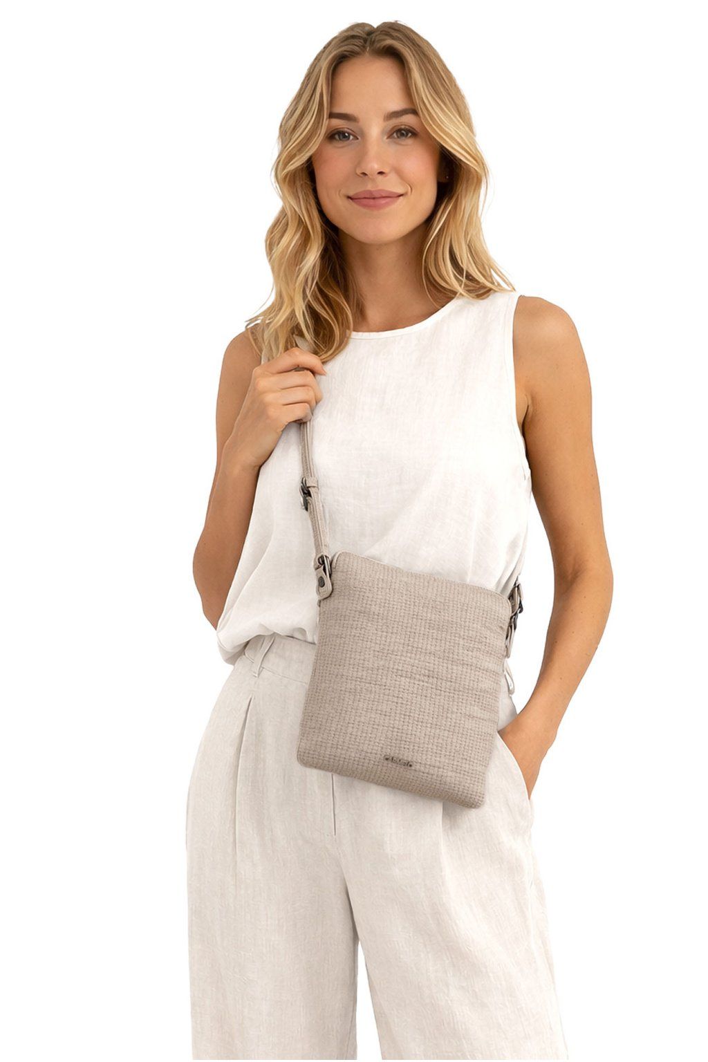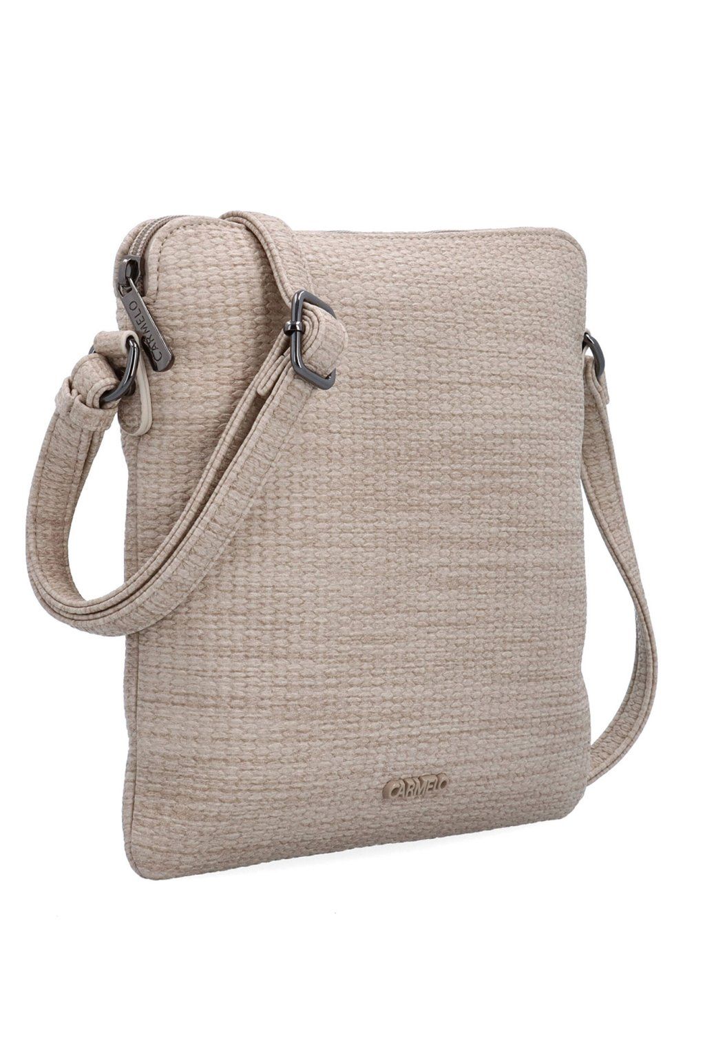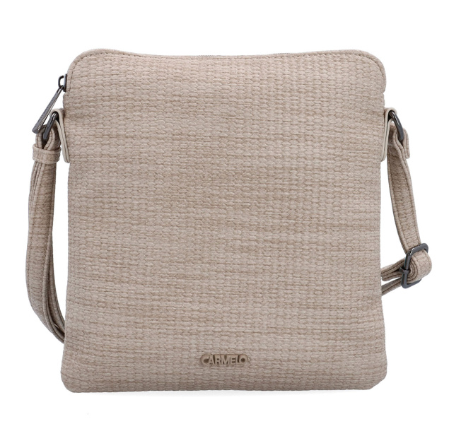 DÁMSKÁ ,,crossbody,, KABELKA přes rameno značky CARMELO. Tato značka je zárukou kvality. Tato dámská kabelka je vyrobena z kvalitní matné eko-kůže v trendy béžové barvě. Dámská kabelka je charakteristická především svým velmi trendy designem, nadčasovou eleganci, ale především svou praktičností. Velkou výhodou kabelky je její velký vnitřní prostor, do kterého lze pohodlně umístit formát A5. Skvělý vnitřní prostor kabelky Vám umožní umístit si zde Vaše doklady, peněženku, klíče, mobil, deštník a ostatní drobností denní potřeby. Díky nastavitelnému popruhu můžete tašku nosit přes rameno, ale také ležérně křížem přes tělo, díky tomu se tak stane tato ,,crossbody,, dámská kabelka přes rameno naprosto ideálním a nepostradatelným společníkem na Vaše cesty autem, vlakem, busem či letadlem. Zadní díl kabelky zdobí kapsička na zip. Všechny kabelky s popruhem přes rameno této značky jsou z důvodu bezpečnosti v horní části opatřeny zipem.