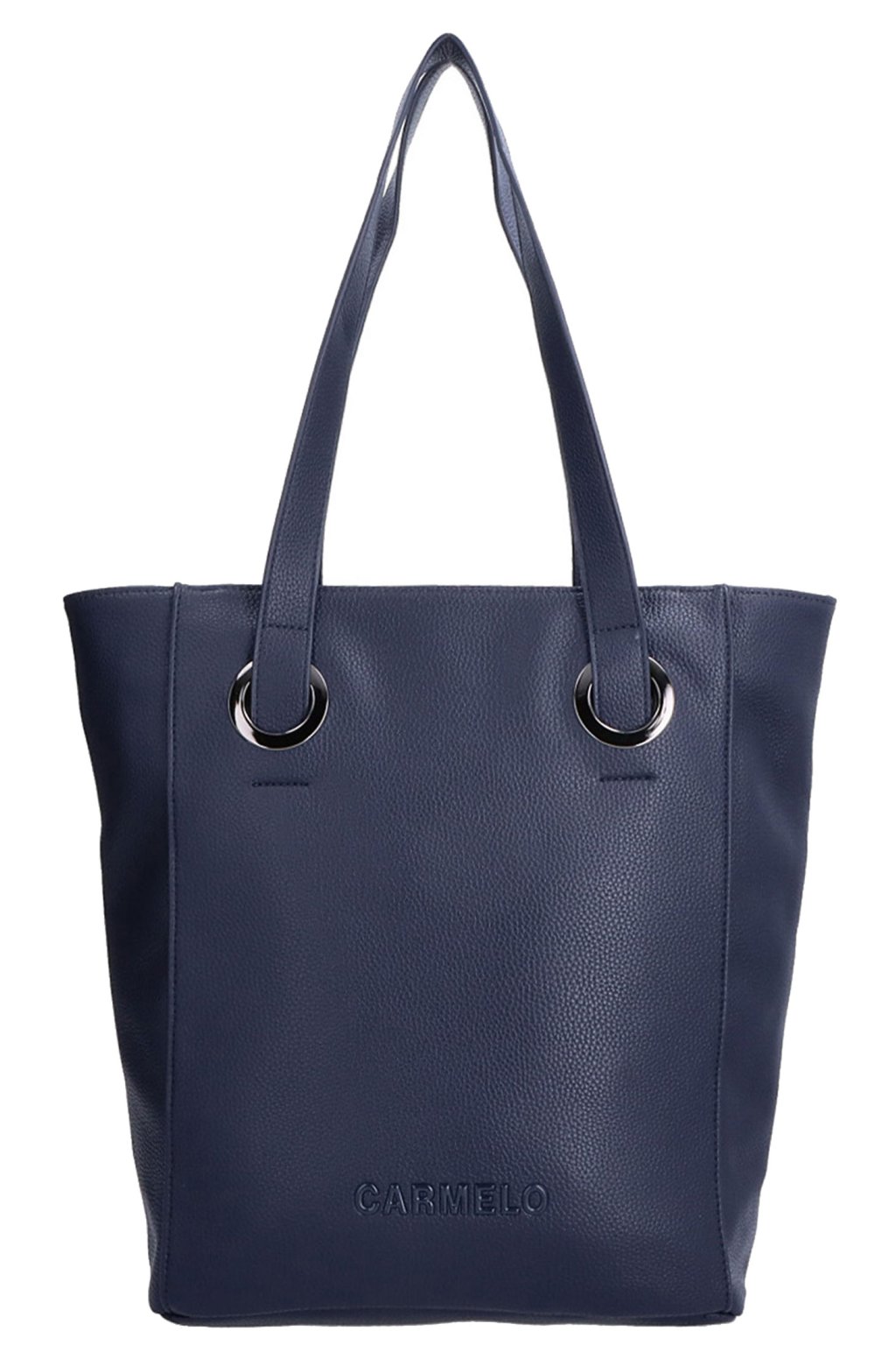 DÁMSKÁ KABELKA značky CARMELO je charakteristická elegantním spojením luxusní eko-kůže v tmavě modré barvě a klasického tvaru. Design této dámské kabelky jemně snoubí klasiku s moderním stylem, proto se také tato kolekce dámských kabelek těší velkému zájmu a širokým portfoliem spokojených zákaznic. Tato dámská kabelka má klasický tvar a díky své velikosti a vnitřnímu prostoru potěší snad každou ženu. Tmavě modré dámská kabelka má dostatečně dlouhé popruhy, díky kterým se nosí velmi pohodlně na ramenou. A stejně jako všechny dámské kabelky této značky se i tato vyznačuje svou praktičností. Dámská kabelka tvoří jednu samostatnou komoru-kapsu, do kterých pohodlně umístíte dokumenty formátu A4 i notebook 13.3“, uvnitř kabelky najdete i kapsičky na mobil, doklady apod. Na zadním dílu kabelky je kapsička na klíče uzavíratelná zipem. Dámská kabelka značky CARMELO je z důvodů větší bezpečnosti v horní části celá uzavíratelná na zip.
