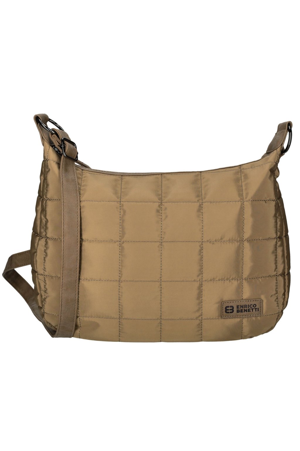 Sportovní dámská kabelka ,,ENRICO BENETTI ,, v béžové barvě. Velkou výhodou této dámské kabelky je její velký vnitřní prostor s kapsičkou na zip a s kapsičkou na mobil. Enrico Benetti DEMI je další kabelka přes rameno, v trendy prošívaném provedení, z lehkého syntetického materiálu a v kombinaci s umělou kůží. Kabelka má také dostatečně dlouhý nastavitelný popruh přes rameno, díky kterému lze kabelku nosit nejen přes rameno, ale také ležérně křížem přes tělo. Béžová dámská kabelka je ve své horní části celá uzavíratelná zipem.