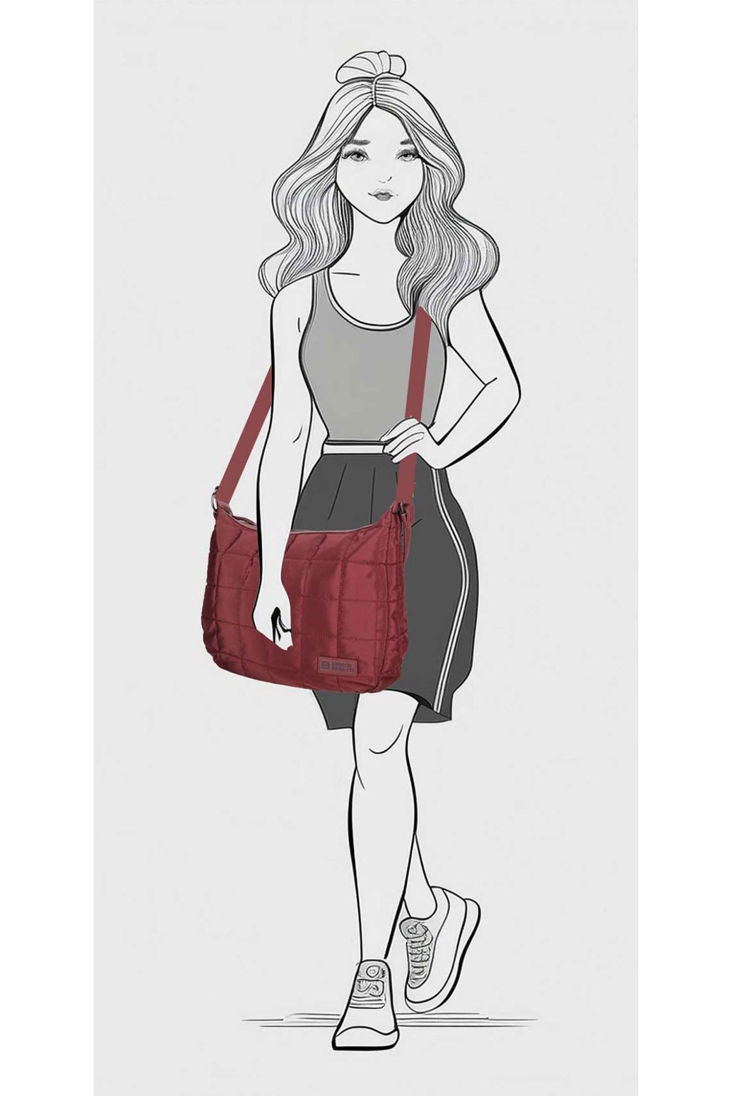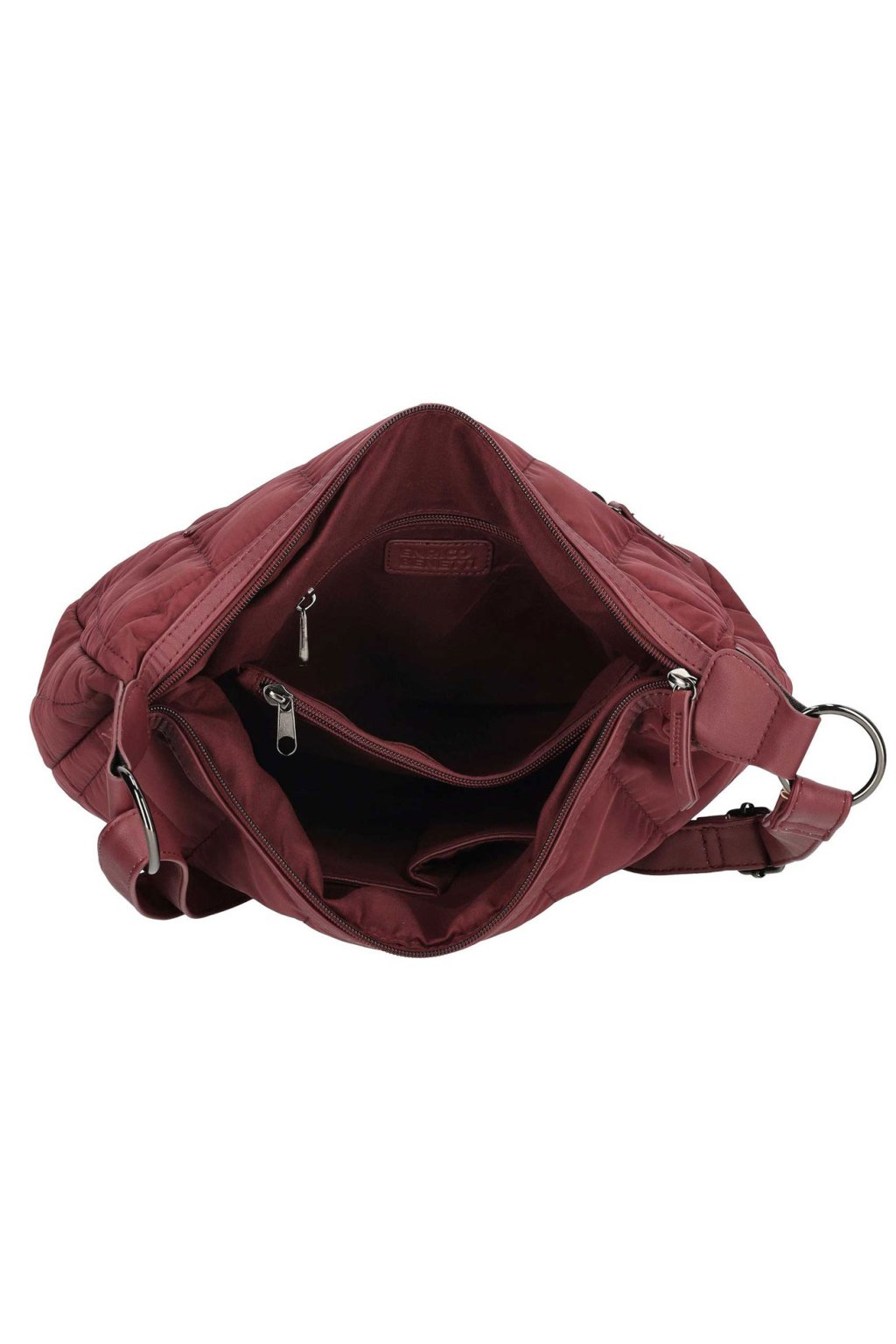 Sportovní dámská kabelka ,,ENRICO BENETTI ,, v bordó barvě. Velkou výhodou této dámské kabelky je její velký vnitřní prostor s kapsičkou na zip a s kapsičkou na mobil. Enrico Benetti DEMI je další kabelka přes rameno, v trendy prošívaném provedení, z lehkého syntetického materiálu a v kombinaci s umělou kůží. Kabelka má také dostatečně dlouhý nastavitelný popruh přes rameno, díky kterému lze kabelku nosit nejen přes rameno, ale také ležérně křížem přes tělo. Bordó dámská kabelka je ve své horní části celá uzavíratelná zipem.