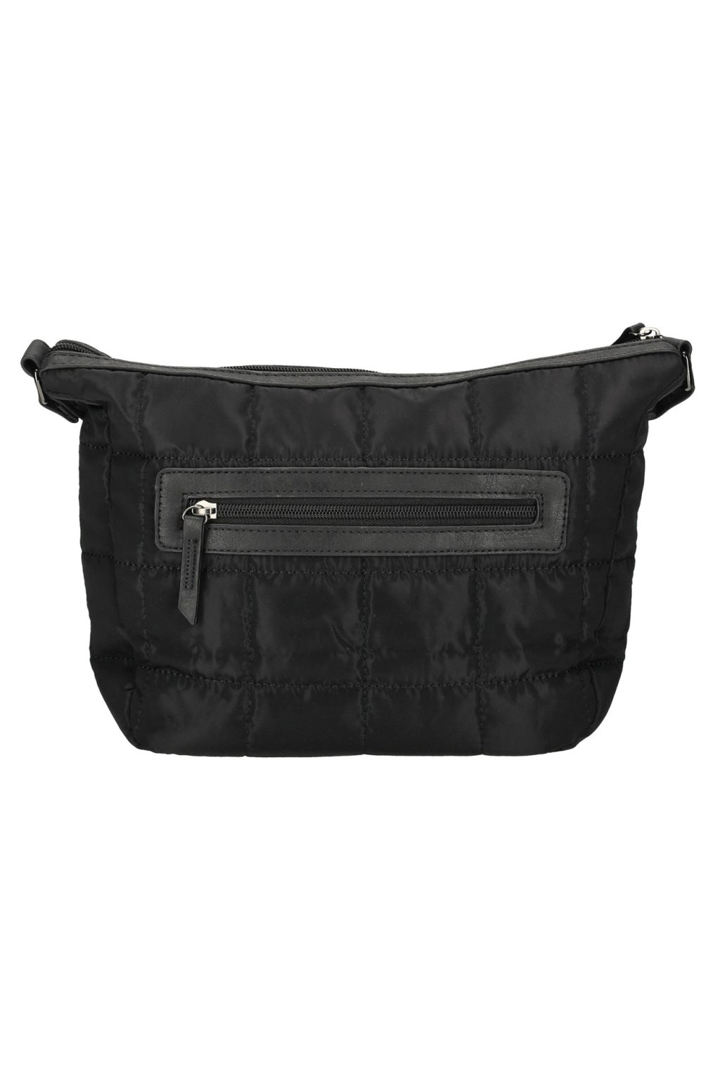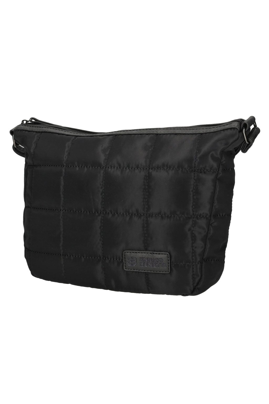 Sportovní dámská kabelka ,,ENRICO BENETTI ,, v černá barvě. Velkou výhodou této dámské kabelky je její velký vnitřní prostor s kapsičkou na zip a s kapsičkou na mobil. Enrico Benetti DEMI je další kabelka přes rameno, v trendy prošívaném provedení, z lehkého syntetického materiálu a v kombinaci s umělou kůží. Kabelka má také dostatečně dlouhý nastavitelný popruh přes rameno, díky kterému lze kabelku nosit nejen přes rameno, ale také ležérně křížem přes tělo. Černá dámská kabelka je ve své horní části celá uzavíratelná zipem.