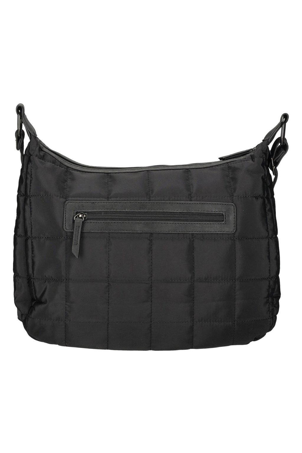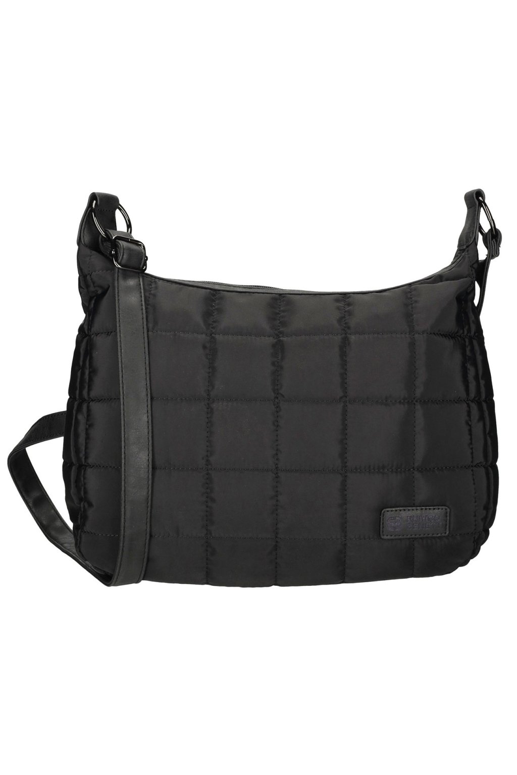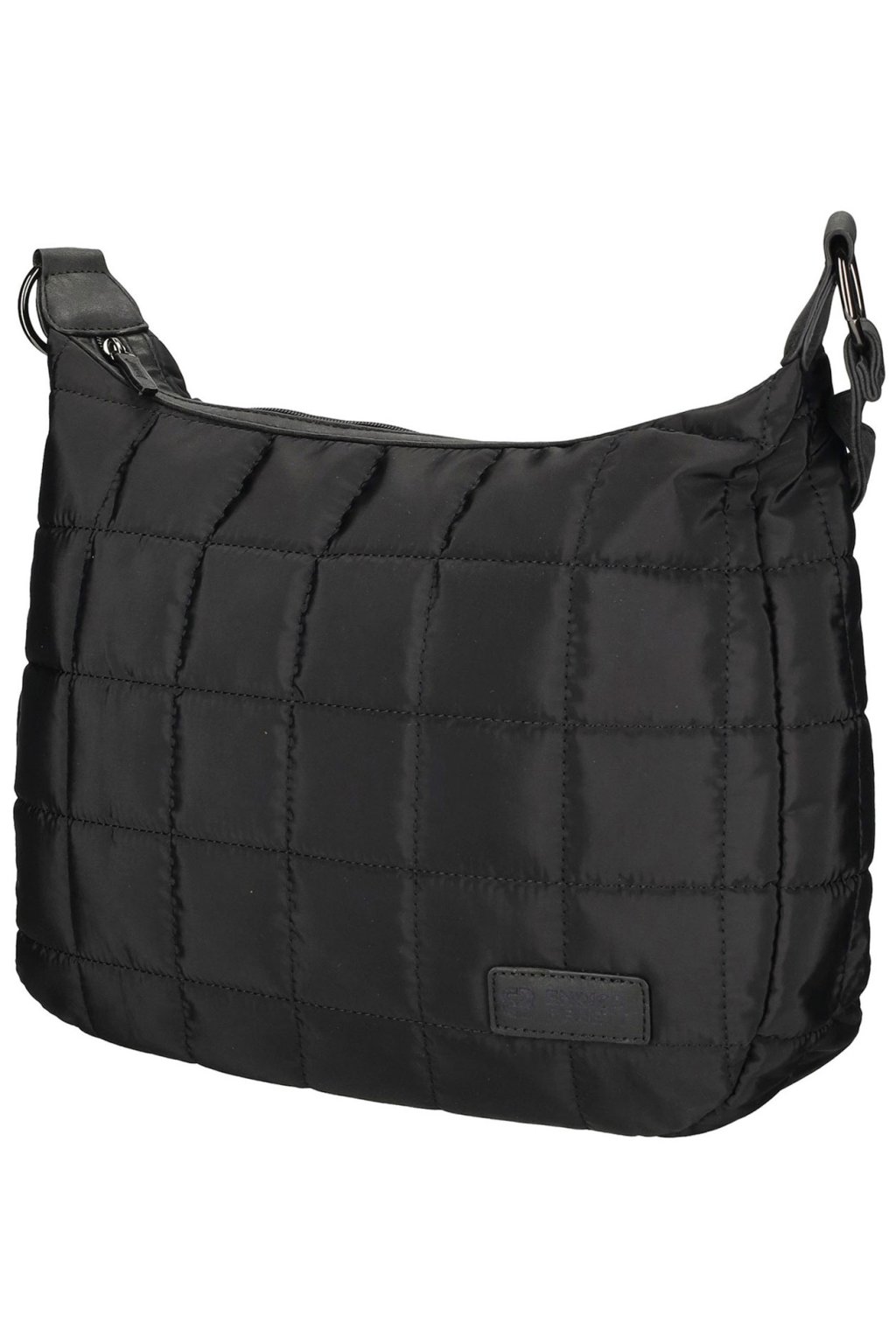 Sportovní dámská kabelka ,,ENRICO BENETTI ,, v černé barvě. Velkou výhodou této dámské kabelky je její velký vnitřní prostor s kapsičkou na zip a s kapsičkou na mobil. Enrico Benetti DEMI je další kabelka přes rameno, v trendy prošívaném provedení, z lehkého syntetického materiálu a v kombinaci s umělou kůží. Kabelka má také dostatečně dlouhý nastavitelný popruh přes rameno, díky kterému lze kabelku nosit nejen přes rameno, ale také ležérně křížem přes tělo. Černá dámská kabelka je ve své horní části celá uzavíratelná zipem.