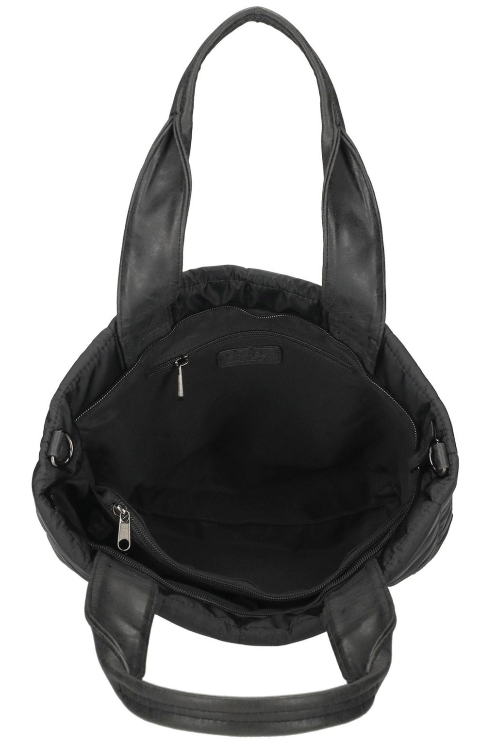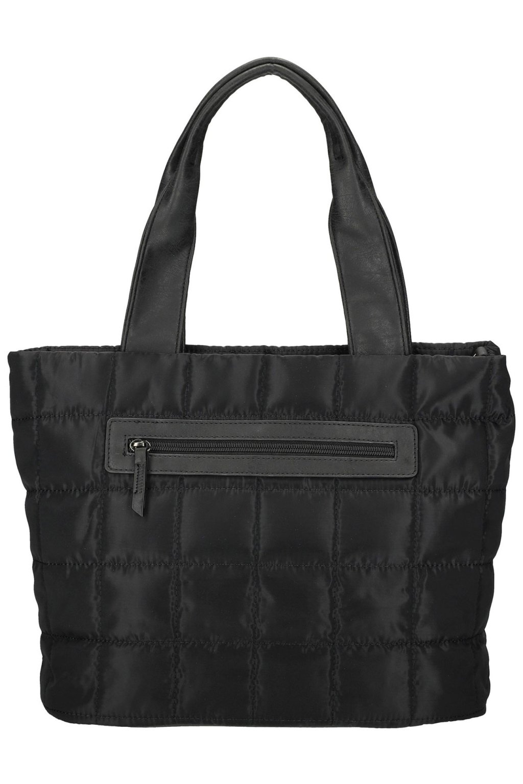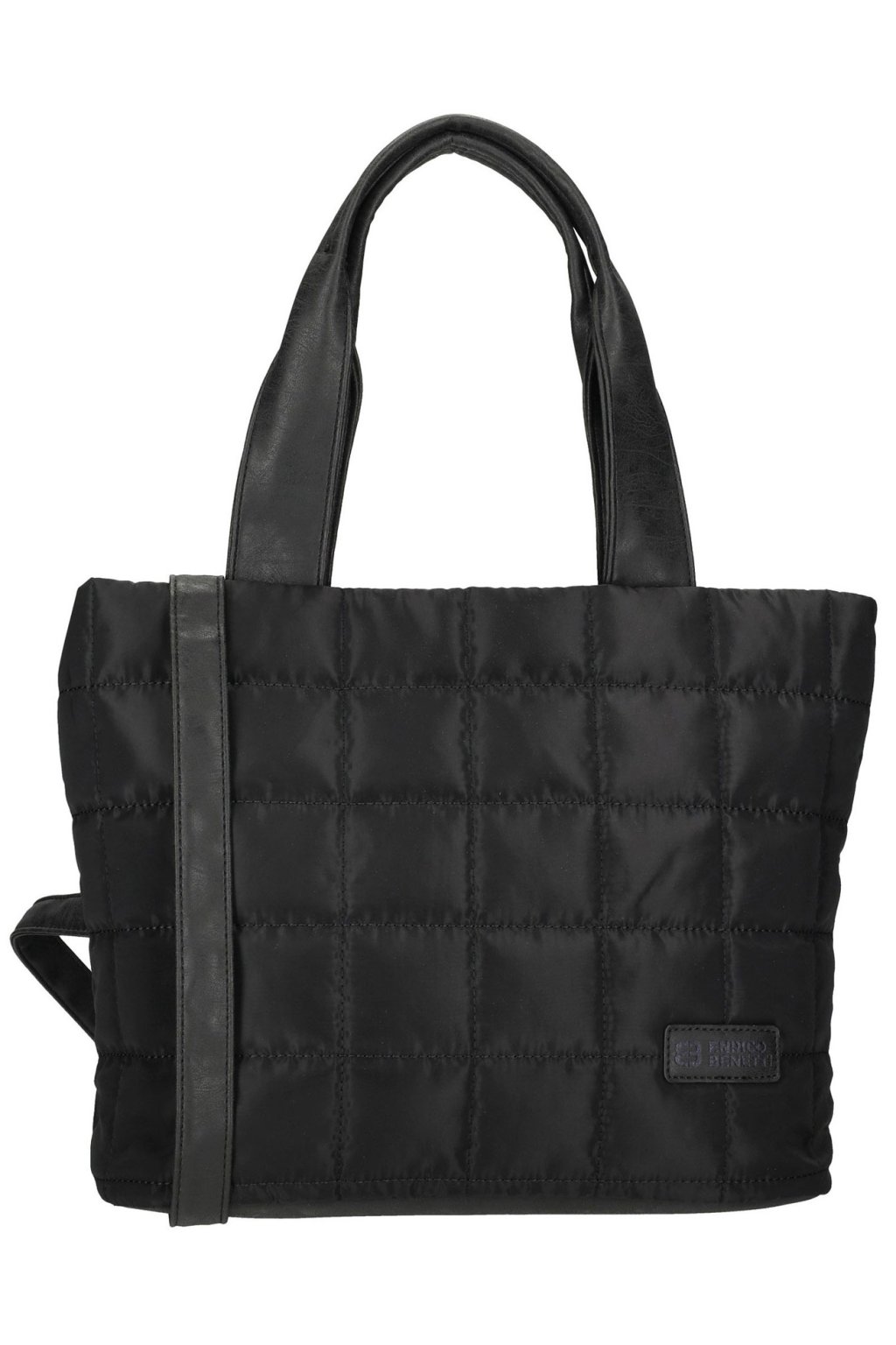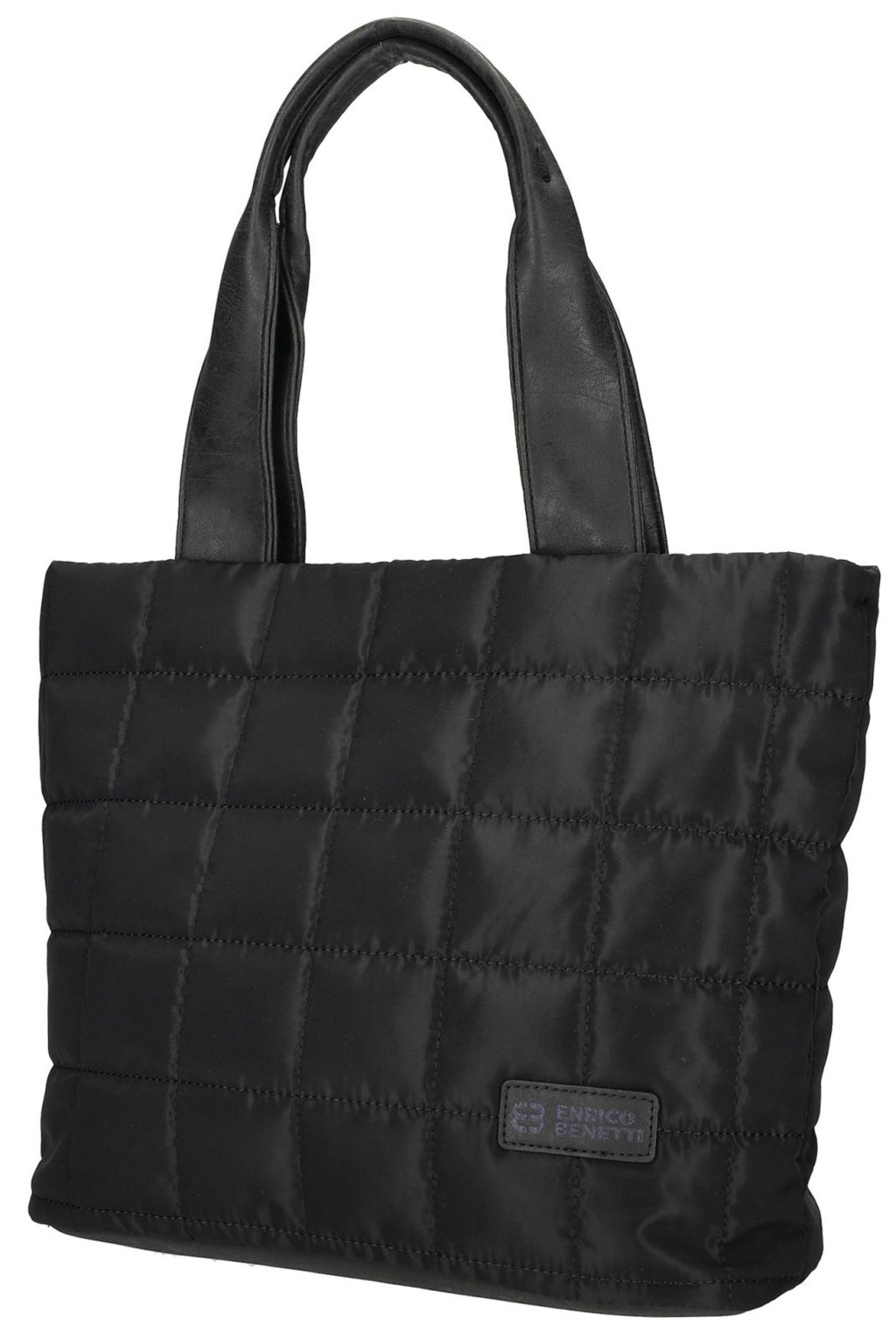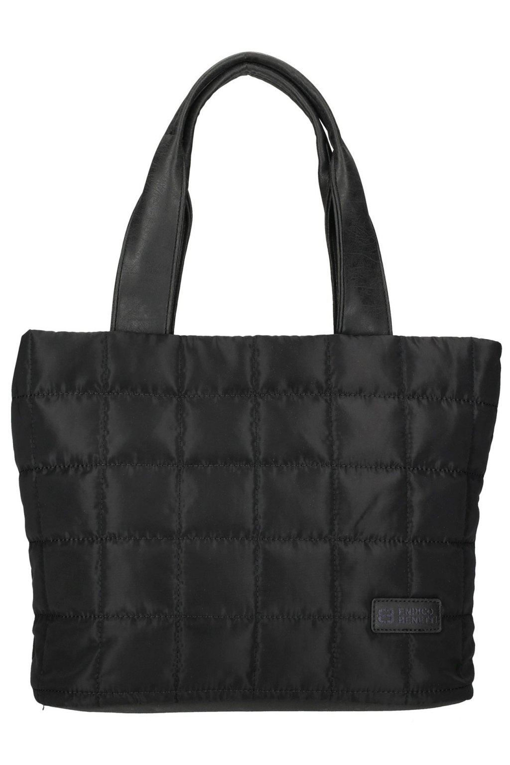 Sportovní dámská kabelka ,,ENRICO BENETTI ,, v černé barvě. Velkou výhodou této dámské kabelky je její velký vnitřní prostor s kapsičkou na zip a s kapsičkou na mobil. Enrico Benetti DEMI je další kabelka přes rameno, v trendy prošívaném provedení, z lehkého syntetického materiálu a v kombinaci s umělou kůží. Dostatečně dlouhé uši výborně sedí na ramenou. Kabelka má také dostatečně dlouhý nastavitelný popruh přes rameno, díky kterému lze kabelku nosit nejen přes rameno, ale také ležérně křížem přes tělo. Černá dámská kabelka je ve své horní části celá uzavíratelná zipem.
