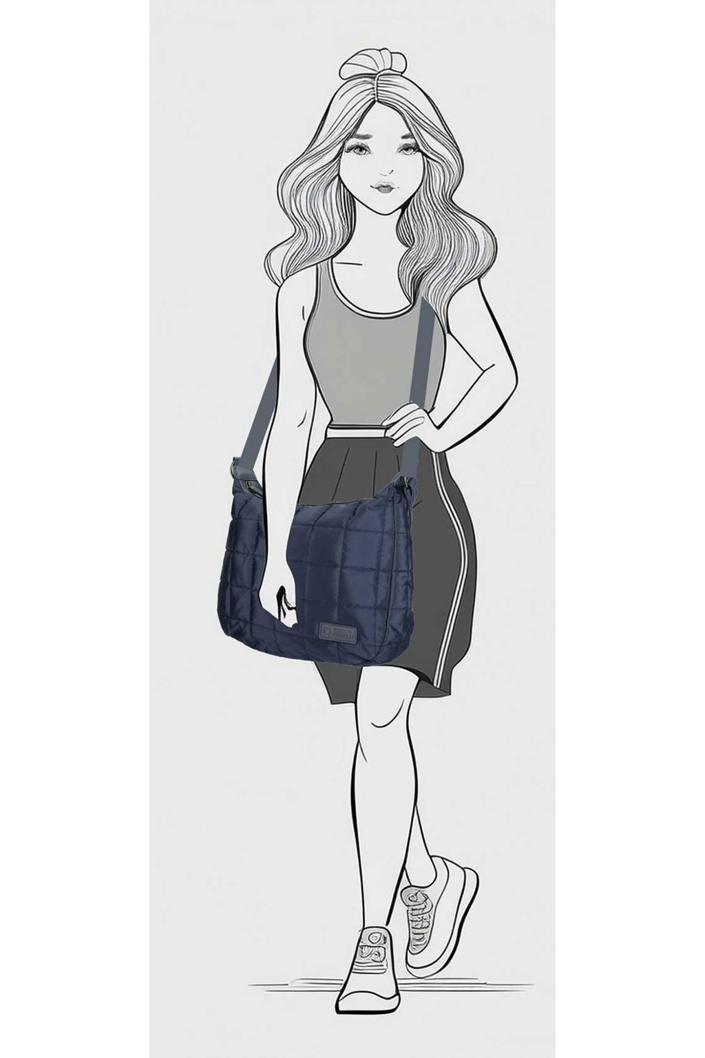 Sportovní dámská kabelka ,,ENRICO BENETTI ,, v modré barvě. Velkou výhodou této dámské kabelky je její velký vnitřní prostor s kapsičkou na zip a s kapsičkou na mobil. Enrico Benetti DEMI je další kabelka přes rameno, v trendy prošívaném provedení, z lehkého syntetického materiálu a v kombinaci s umělou kůží. Kabelka má také dostatečně dlouhý nastavitelný popruh přes rameno, díky kterému lze kabelku nosit nejen přes rameno, ale také ležérně křížem přes tělo. Modrá dámská kabelka je ve své horní části celá uzavíratelná zipem.