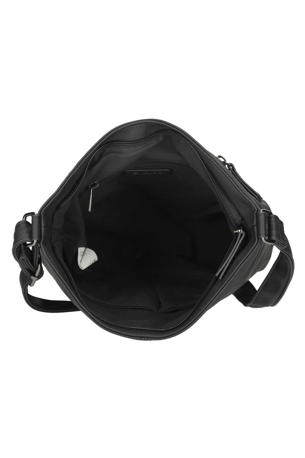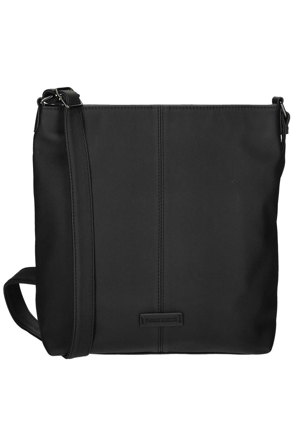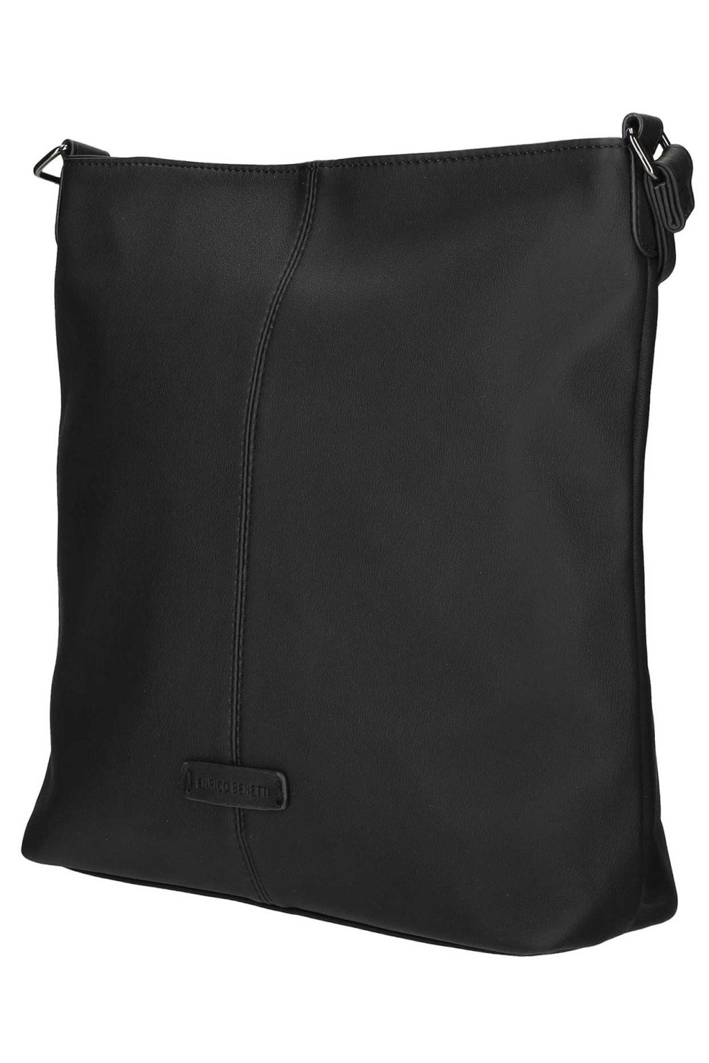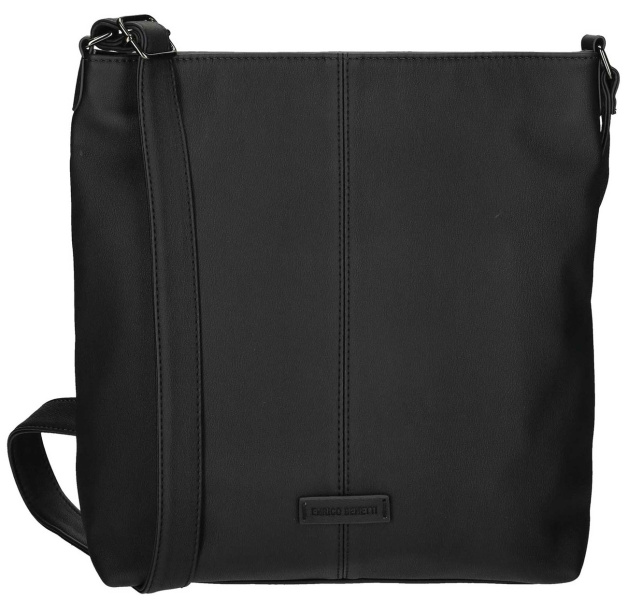 Moderní dámská kabelka holandské značky Enrico Benetti z nejnovější kolekce ,,ROZA ,, z eko-kůže v trendy černé barvě má nadčasový design a délkou nastavitelný popruh přes rameno. Vnitřní část kabelky, tvoří dostatečně velký prostor, do kterého lze umístit i složky formátu A5, mobil, doklady, peněženku, deštník a jiné drobnosti denní potřeby. Na zadním díle kabelky je kapsička uzavíratelná na zip. Celá dámská kabelka je chráněn proti vykradení zipem.