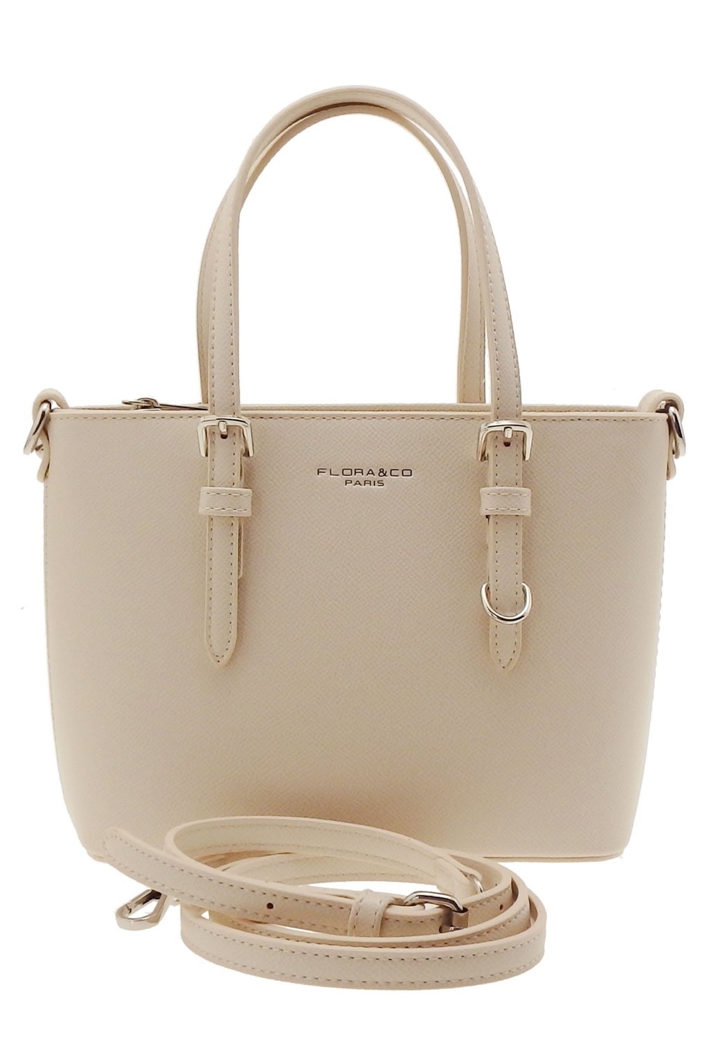 Elegantní malá dámská kabelka francouzské značky FLORA&CO v trendy béžové barvě. Pro kabelku je charakteristické propojení eko-kůže v elegantní béžové barvě a jejího klasického tvaru. Velkou výhodou u tohoto typu dámské kabelky je její velký vnitřní prostor do kterého lze velmi lehce umístit peněženku, mobil a jiné drobnosti. Praktické jsou také dvě poutka do ruky a dostatečně dlouhý odnímatelný popruh přes rameno. Dámská kabelka se ve své horní části celá uzavírá zipem.