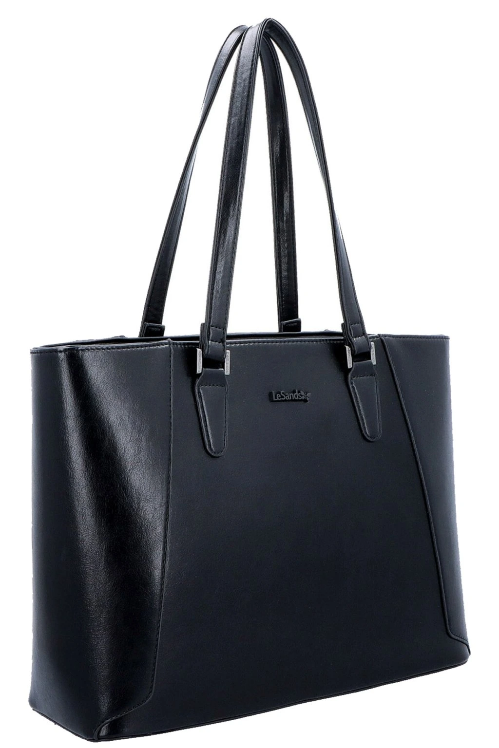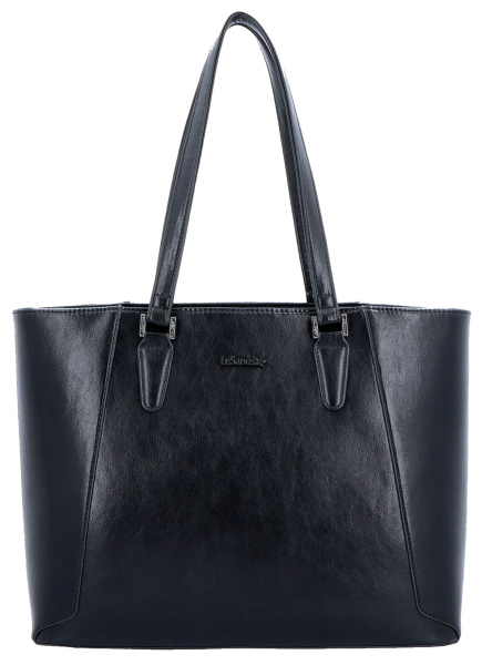 DÁMSKÁ KABELKA značky LESANDS je charakteristická elegantním spojením luxusní eko-kůže v černé barvě a klasického tvaru. Design této dámské kabelky jemně snoubí klasiku s moderním stylem, proto se také tato kolekce dámských kabelek těší velkému zájmu a širokým portfoliem spokojených zákaznic. Tato dámská kabelka má klasický tvar a díky své velikosti a vnitřnímu prostoru potěší snad každou ženu. Černá dámská kabelka má dostatečně dlouhé popruhy, díky kterým se nosí velmi pohodlně na ramenou. A stejně jako všechny dámské kabelky této značky se i tato vyznačuje svou praktičností. Dámská kabelka tvoří jednu samostatnou komoru-kapsu, do kterých pohodlně umístíte dokumenty formátu A4 i notebook 13.3“, uvnitř kabelky najdete i kapsičky na mobil, doklady apod. Na zadním dílu kabelky je kapsička na klíče uzavíratelná zipem. Dámská kabelka značky LESANDS je z důvodů větší bezpečnosti v horní části celá uzavíratelná na zip.