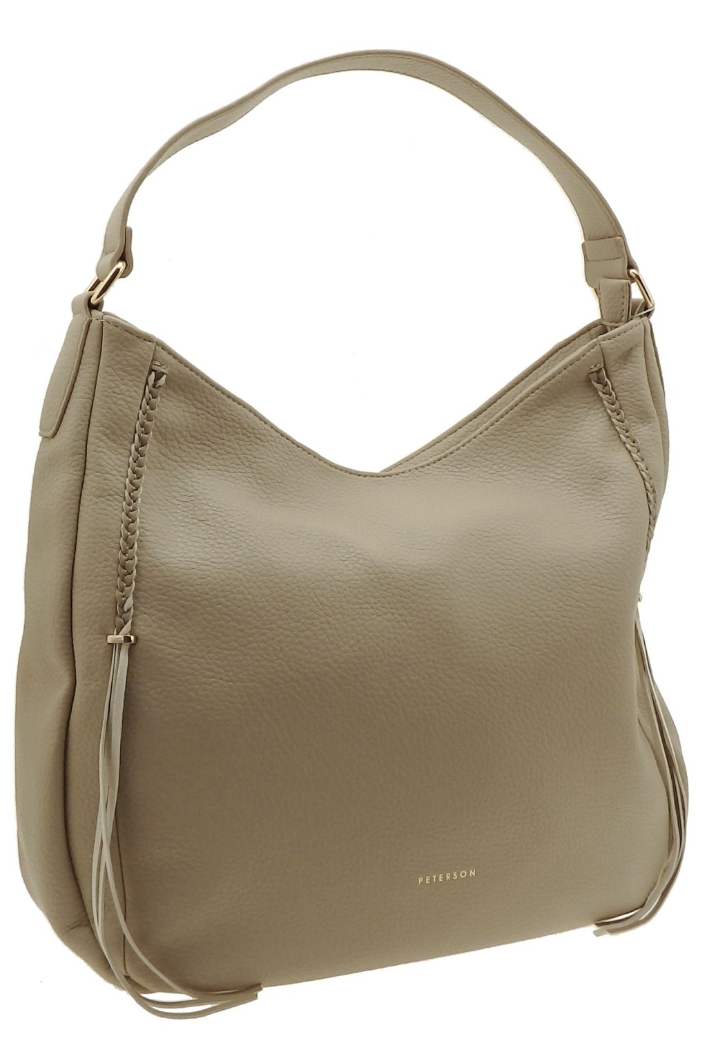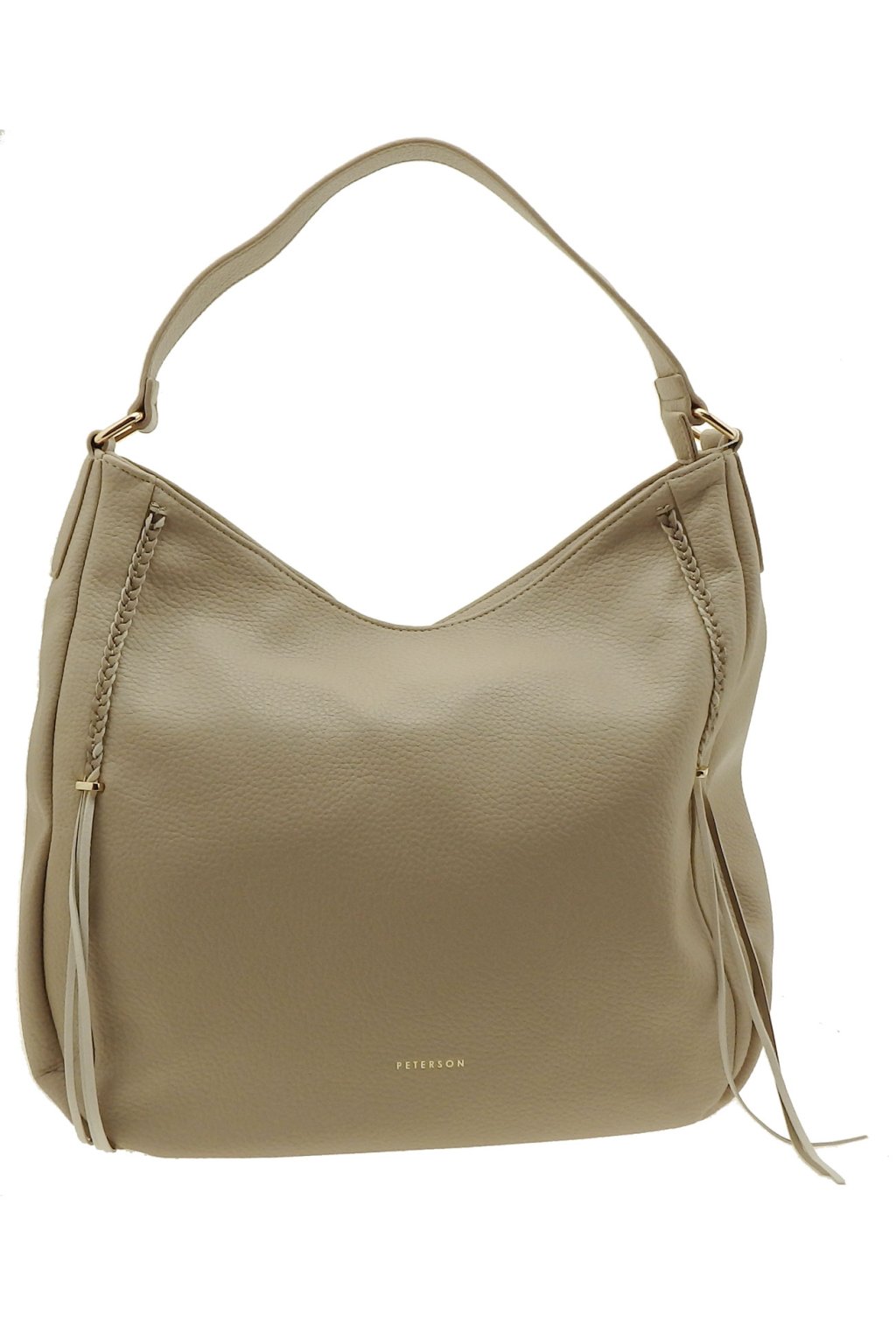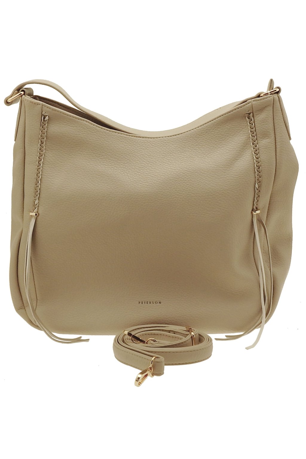 Elegantní dámská kabelka značky PETERSON v luxusní béžové barvě. Velkou výhodou kabelky je její velký vnitřní prostor, do kterého lze pohodlně umístit formát A4. Velmi trendy a dostatečně dlouhé je u této dámské kabelky její ramenní popruh. Kabelka má také dostatečně dlouhý nastavitelný popruh přes rameno, díky kterému lze kabelku nosit nejen přes rameno, ale také ležérně křížem přes tělo. Na zadním dílu kabelky je praktická kapsička uzavíratelná zipem. Dámská kabelka se dá ve své horní části celá uzavřít zipem.