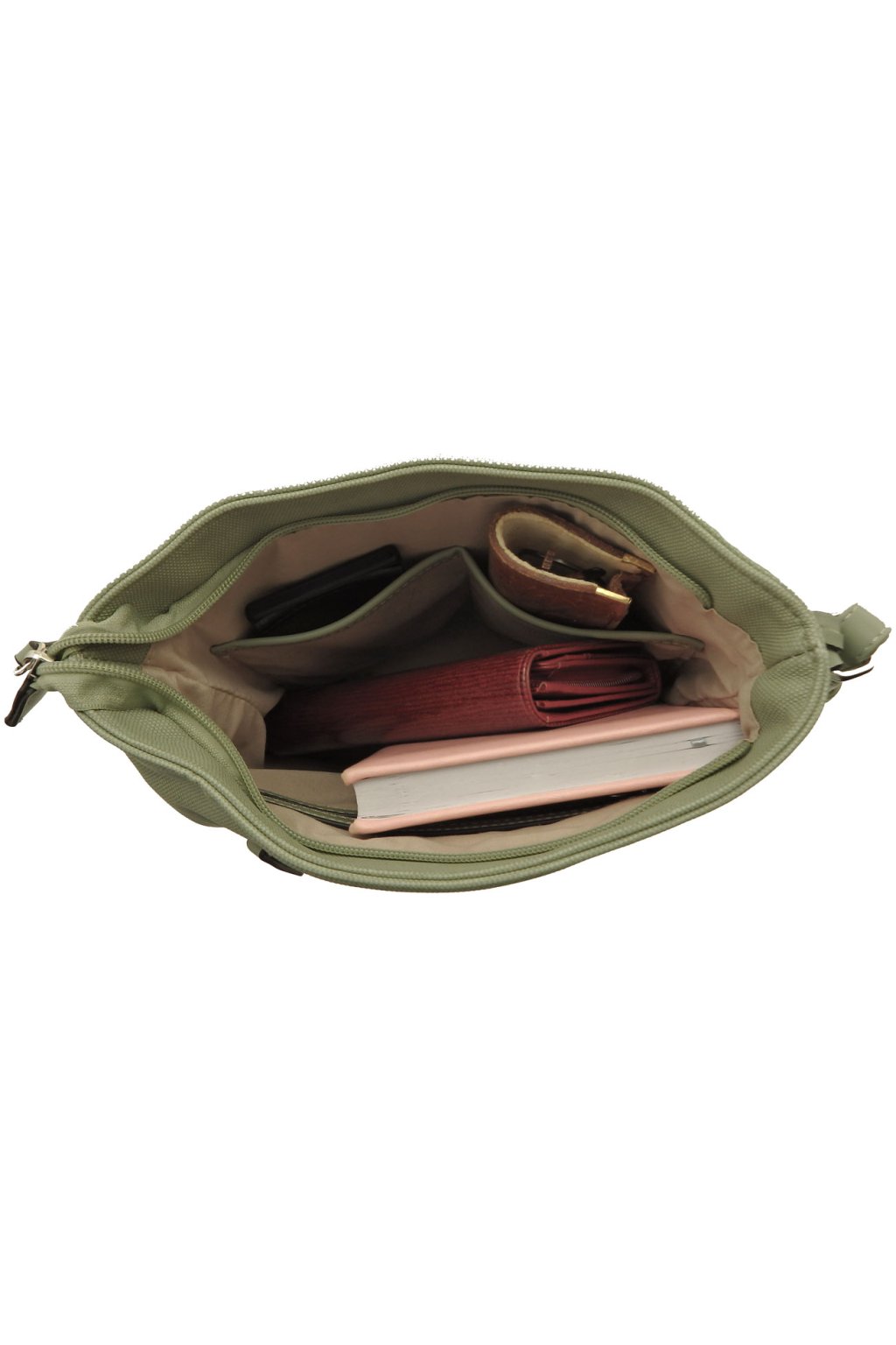 - do zelené dámské kabelky lze snadno umístit doklady, mobil, klíče a jiné věci denní potřeby