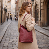 - dámská kabelka je vyrobena z matné bordó barvě doplněna o trendy kapsičky na zadním díle