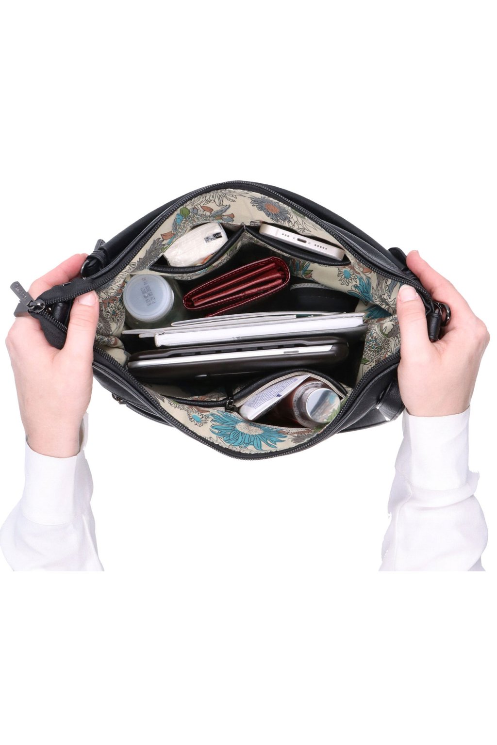 - celá kabelka je chráněna v horní části zipem, také velmi podstatné u kabelek přes rameno z hlediska ochrany proti vykradení