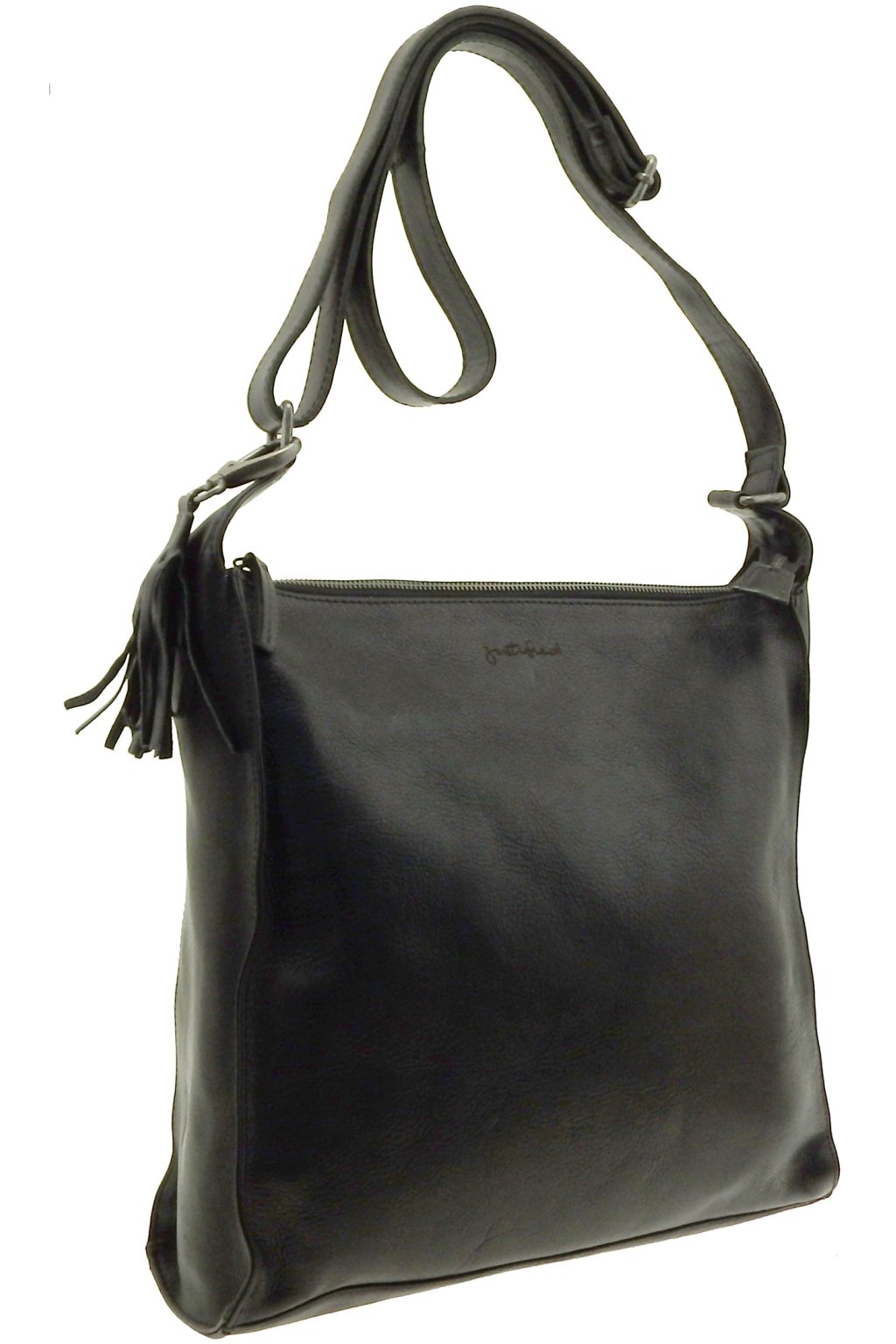 Elegantní dámská kožená kabelka holandské značky JUSTIFIED v trendy černé barvě jednoduchém designu. Velkou výhodou kožené kabelky je její velký vnitřní prostor obsahuje kapsy na telefon, doklady, nebo peněženku, a kůží obšitou přihrádku se zipem do podšívky. Součástí kabelky je nastavitelný popruh přes rameno. Kožená dámská kabelka se dá ve své horní části celá uzavřít zipem.