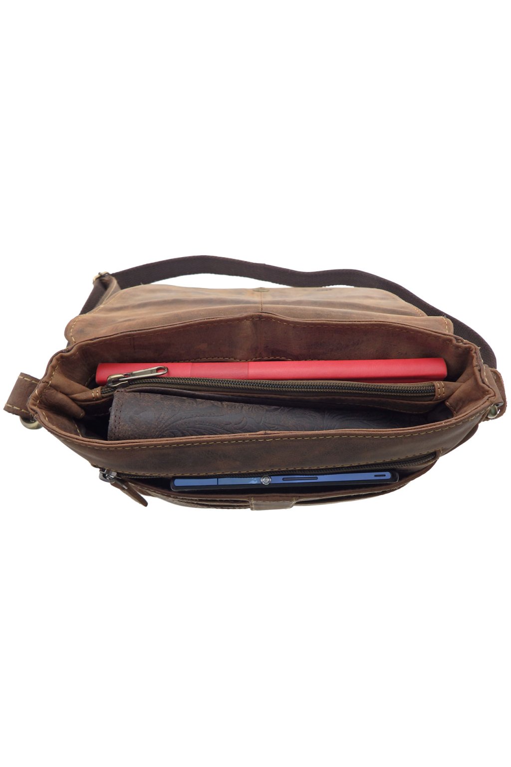 DÁMSKÁ KOŽENÁ ,,crossbody,, KABELKA přes rameno od známe německé značky GREEN BURRY, která je zárukou vysoké kvality. Dámská kabelka je vyrobena z přírodní hovězí kůže v elegantní hnědé barvě. Dámská ,,crossbody,, kabelka je charakteristická především svým velmi trendy designem, nadčasovou eleganci, ale především svou praktičností. Skvělý vnitřní prostor kabelky Vám umožní umístit si zde Vaše doklady, peněženku, klíče, mobil a ostatní drobnosti denní potřeby. Díky nastavitelnému popruhu můžete kabelku nosit přes rameno, ale také ležérně křížem přes tělo. Na zadním dílu kabelky je praktická kapsička uzavíratelná zipem. Kabelka se tak stane naprosto ideálním a nepostradatelným společníkem na Vaše cesty. Dámská kožená kabelka se celá ve své horní části uzavírá zipem a navíc je z důvodu větší bezpečnosti opatřená klopou na magnet.