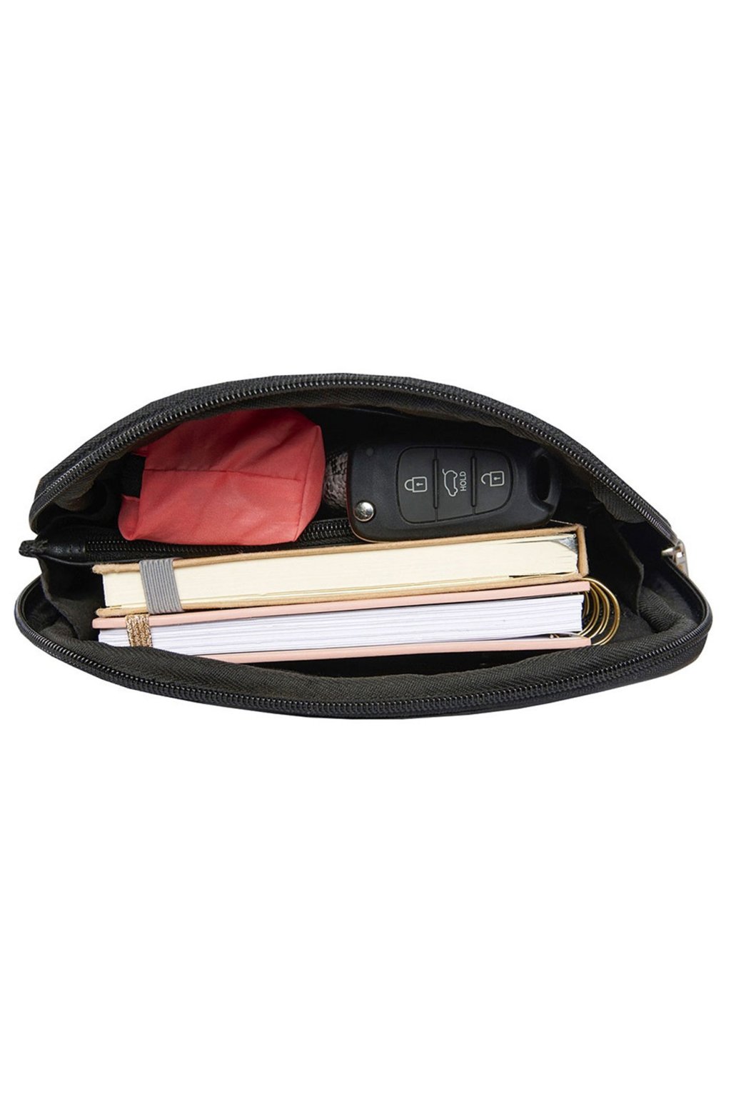 - 1 velká komora na zip rozdělená zipovou přihrádkou