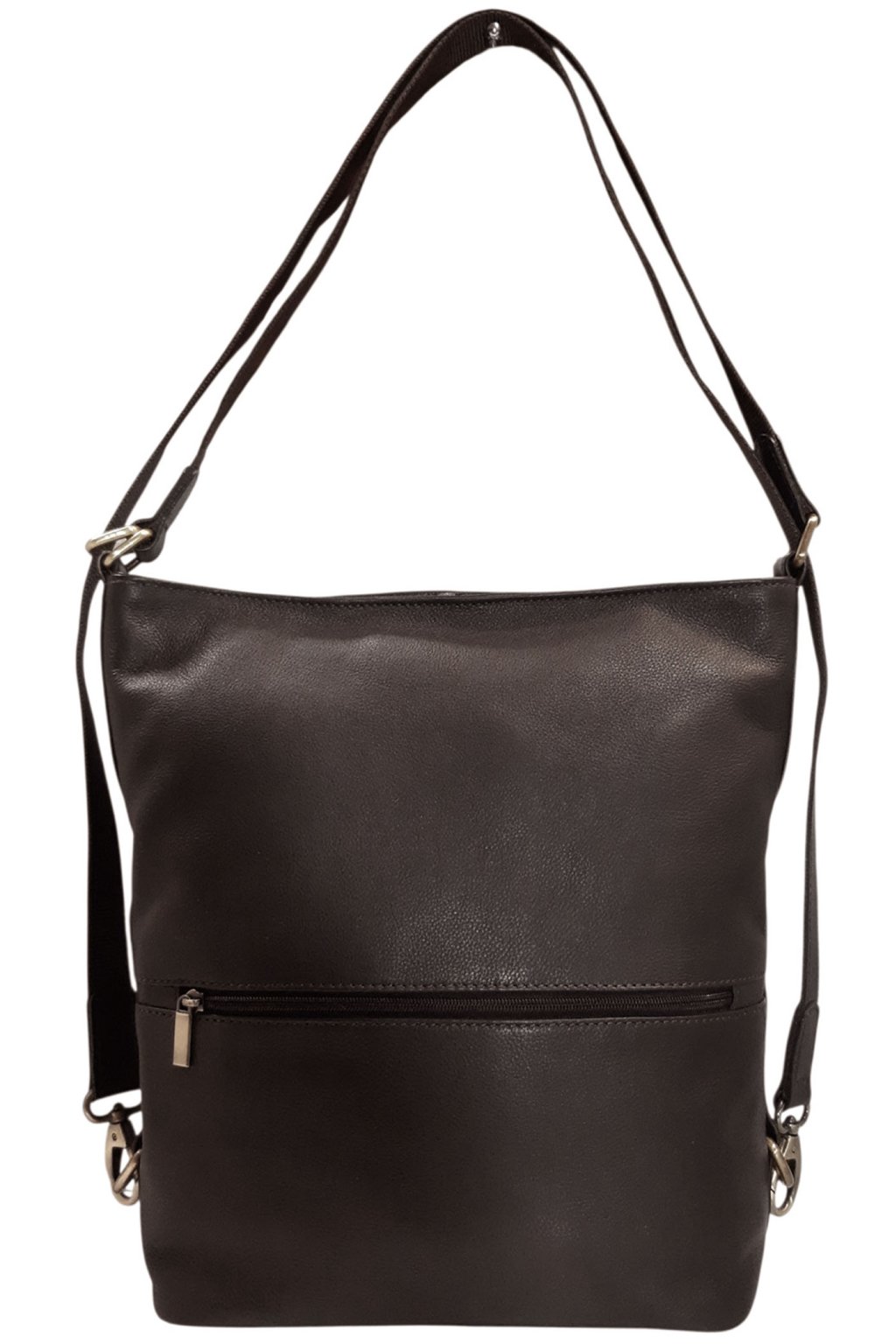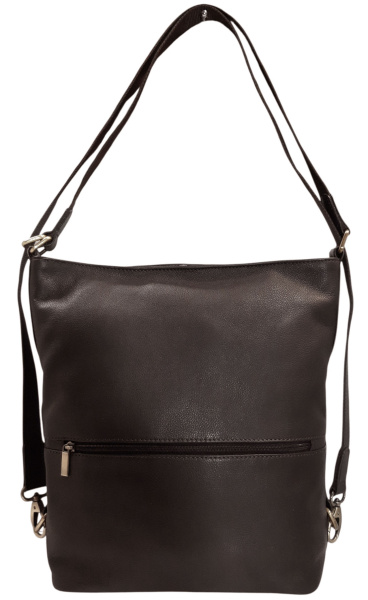 Tento stylový menší dámský batoh vyrobený z měkké hnědé kůže, nabízí unikátní spojení elegance a funkčnosti. Prostorný vnitřek kabelky je ideální pro uskladnění všech vašich osobních věcí a doplňků. Na vnější straně kabelky naleznete dvě praktické zipové kapsičky, které umožňují rychlý přístup k drobným předmětům. Dámská kabelka se jednoduše (stáhnutím popruhů k sobě) transformuje na batoh, čímž se přizpůsobí vašim potřebám, ať už pro každodenní nošení nebo volnočasové aktivity. Elegantní hnědé barva dodává dámské kabelce/ batohu výrazný šmrnc.