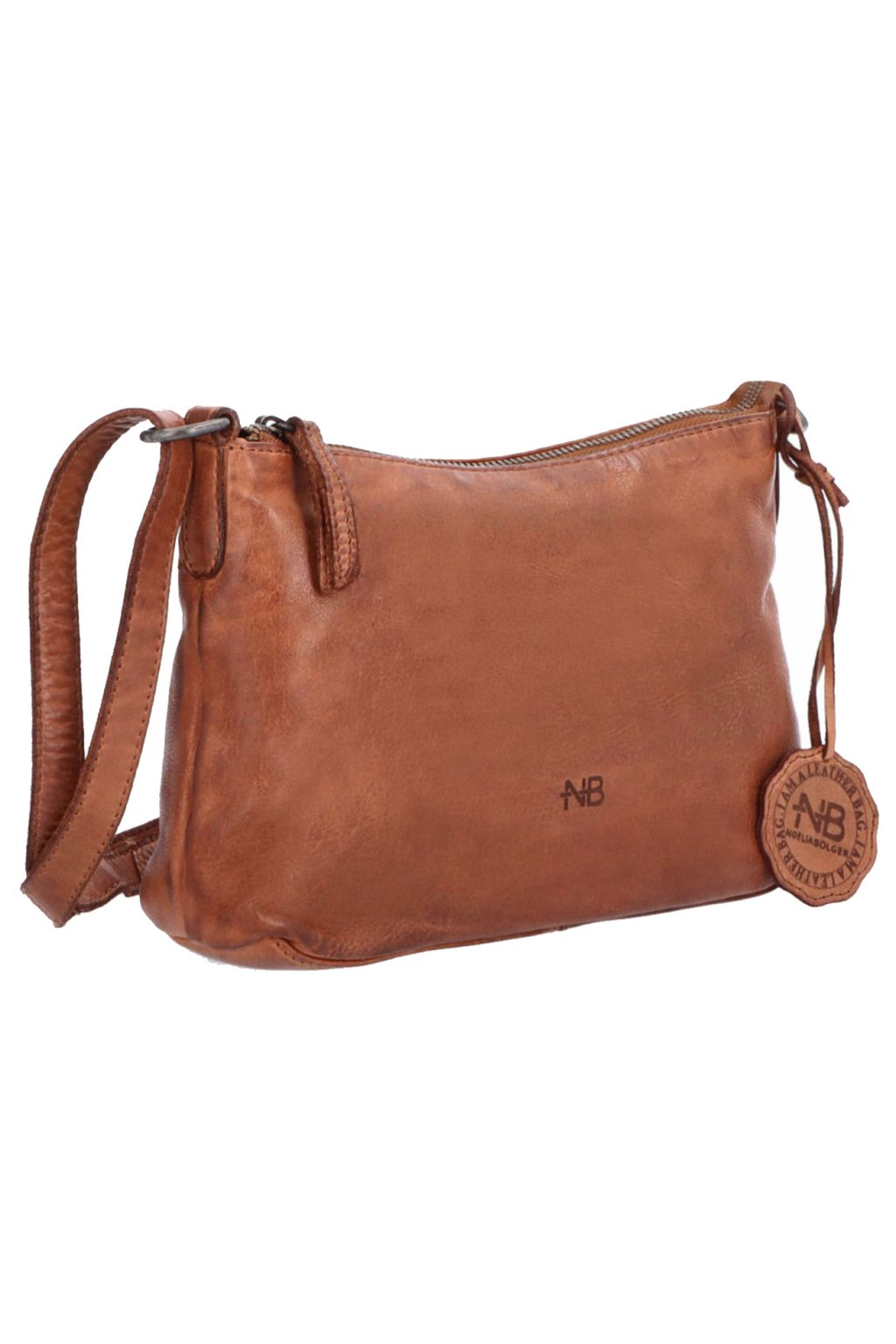 Elegantní dámská malá kožená kabelka značky NOELIA BOLGER v trendy světlé hnědé barvě jednoduchém designu. Velkou výhodou kožené kabelky je její velký vnitřní prostor obsahuje kapsy na telefon, doklady, nebo peněženku, a kůží obšitou přihrádku se zipem do podšívky. Součástí kabelky je nastavitelný popruh přes rameno. Kožená dámská kabelka se dá ve své horní části celá uzavřít zipem.
