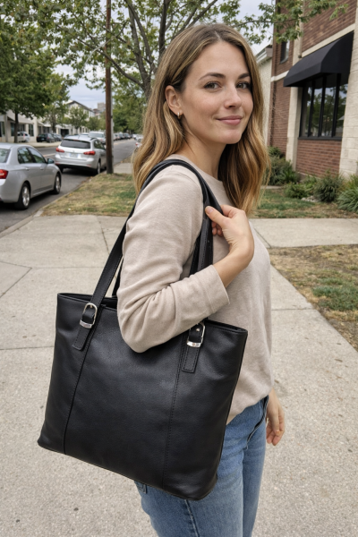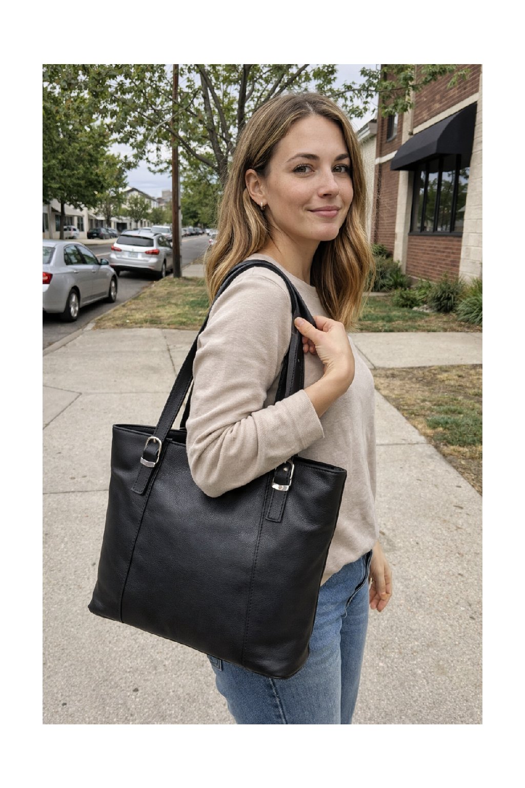DÁMSKÁ KOŽENÁ KABELKA SENDIDESIGN – ČERNÁ SHOPPER