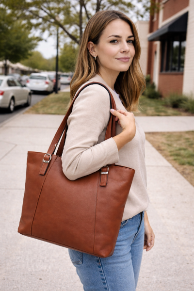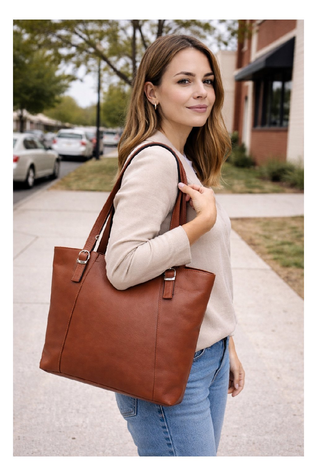 DÁMSKÁ KOŽENÁ KABELKA SENDIDESIGN – SVĚTLÉ HNĚDÁ SHOPPER