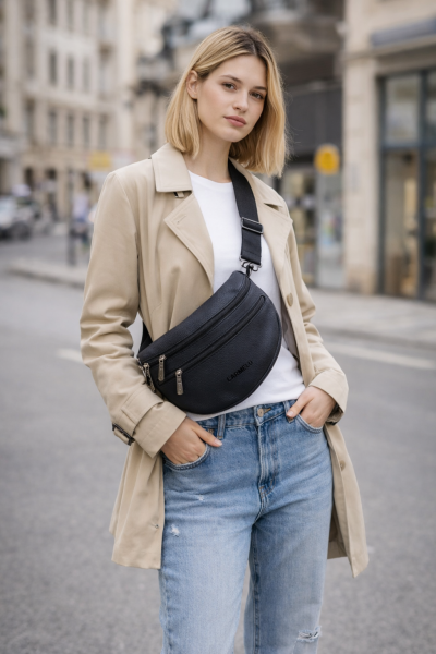 PRAKTICKÁ DÁMSKÁ LEDVINKA ,,CARMELO ,, se vyznačuje čistým jednoduchým designem. Ledvinka je vyrobena z kvalitní eko-kůže ve černé barvě. Dámské ledvinky CARMELO jsou oblíbené u zákazníků pro svou praktičnost. Na svoji velikost, toho totiž opravdu nabízí hodně. Vnitřní část je celá podšitá látkou a prakticky rozdělená na tři části. První je volná, druhá i třetí se zipem uzavíratelnou kapsou do podšívky. Právě dámské ledvinky jsou tou správnou volbou na výlety, turistiku, na brusle i jiné sportovní aktivity. Dámská ledvinka je určena pro všechny, kteří s sebou nechtějí brát batoh, ale zároveň si potřebují uložit a mít vždy po ruce drobnosti denní potřeby. Součástí ledvinky je odnímatelný a nastavitelný popruh, díky kterému můžete ledvinku nosit kolem pasu a nebo křížem přes prsa. Dámská ledvinka má ideální velikost, která zaručuje její maximální využití na sportovní aktivity, víkendové pobyty i na cestování. Dámskou ledvinku CARMELO lze nosit také ležérně přes rameno.