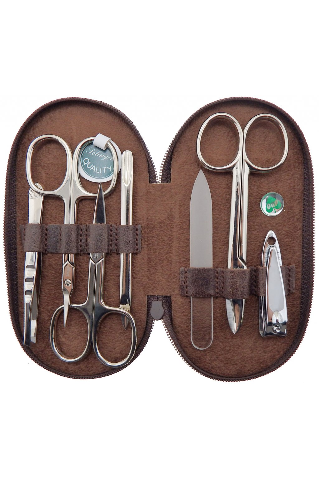 Manikúra TÁŇA od českého výrobce obsahuje nehtové i záděrové nůžky značky Solingen v zahnutém provedení, nůžtičky, nehtový pilník, klasickou pinzetu, štipky a ostatní nástroje z poniklované oceli značky Dup.