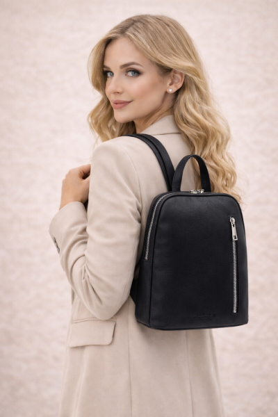 - kožený dámský batoh je v moderní černé barvičce