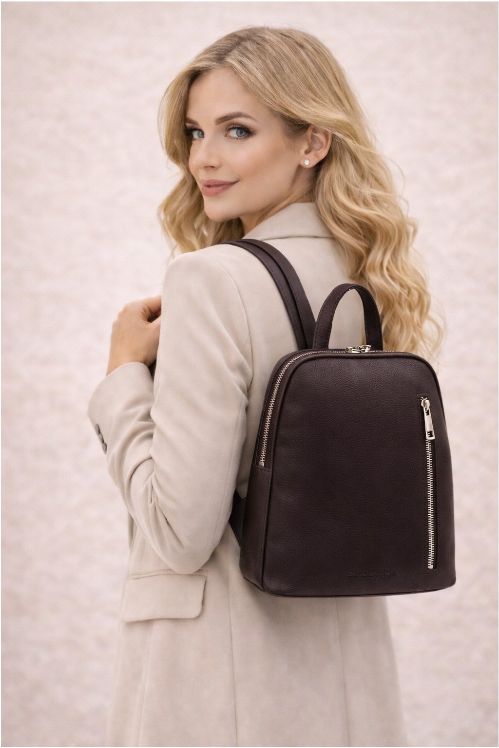 - kožený dámský batoh je v moderní hnědé barvičce