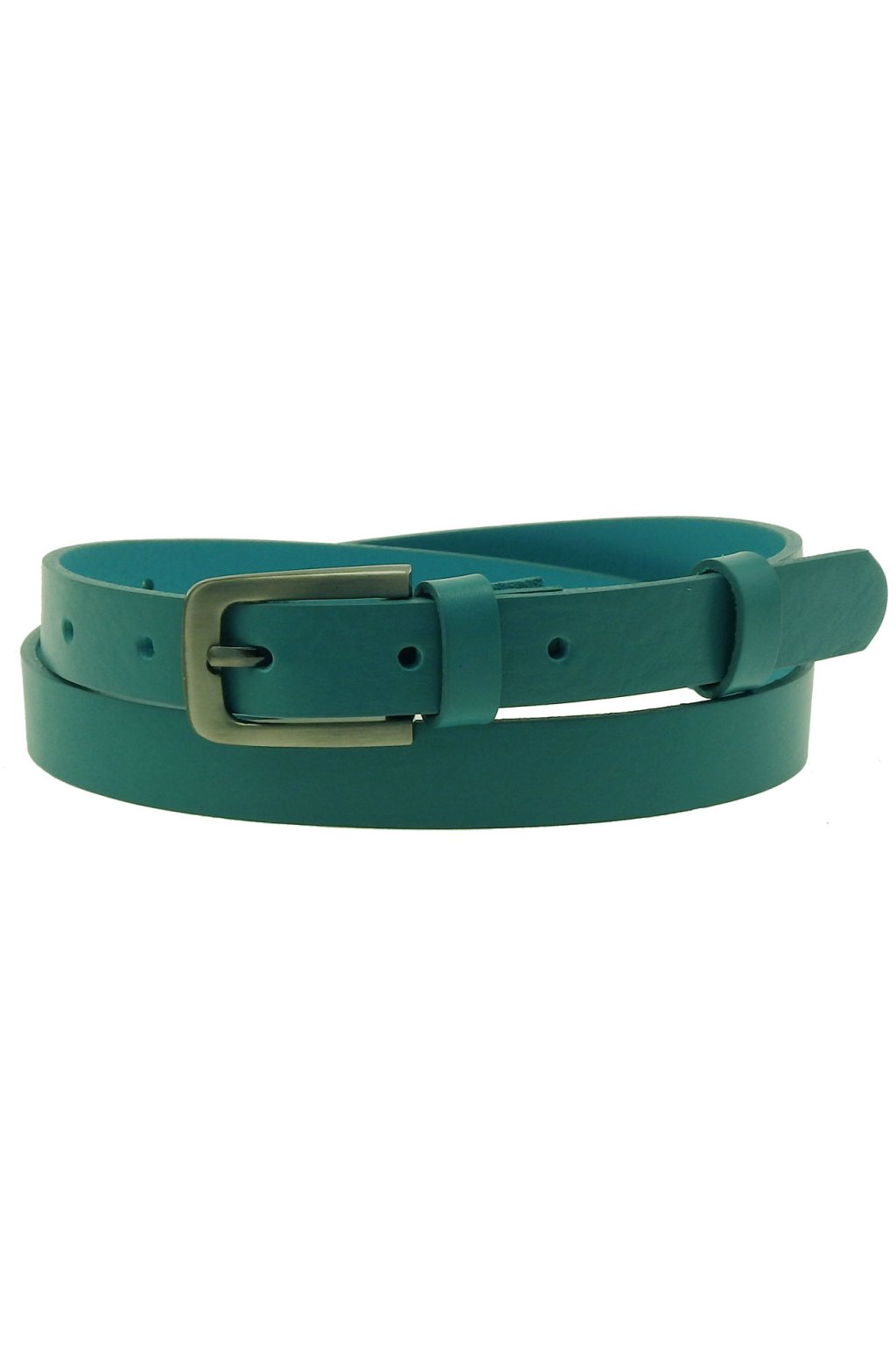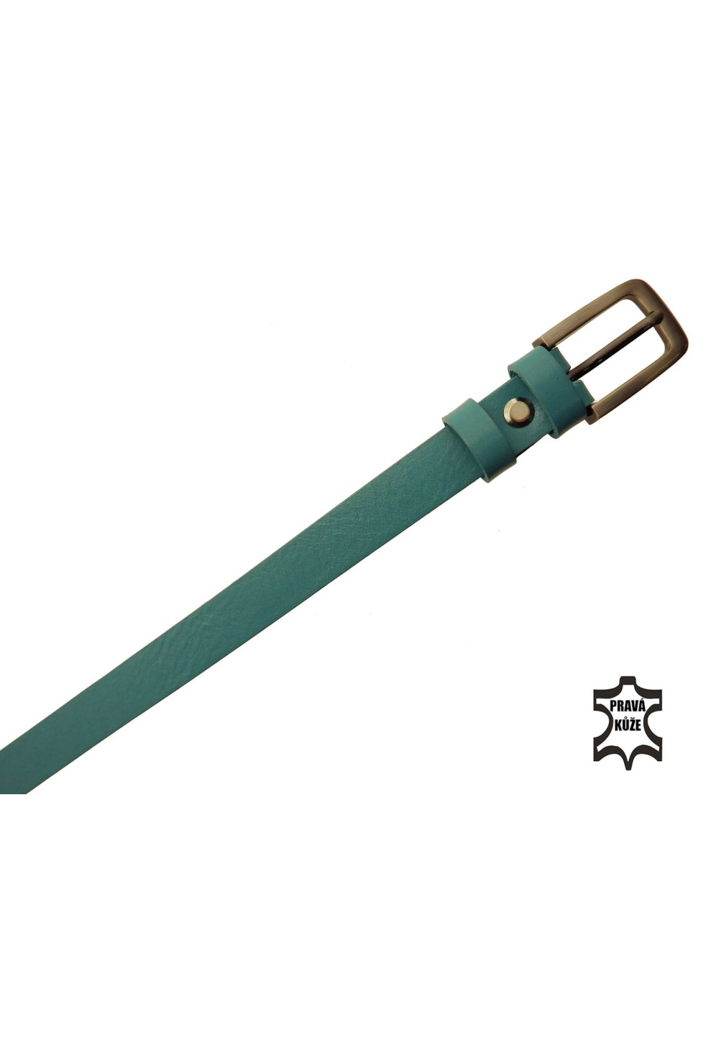 - kožený dámský opasek v modré barvě s klasickou sponu
