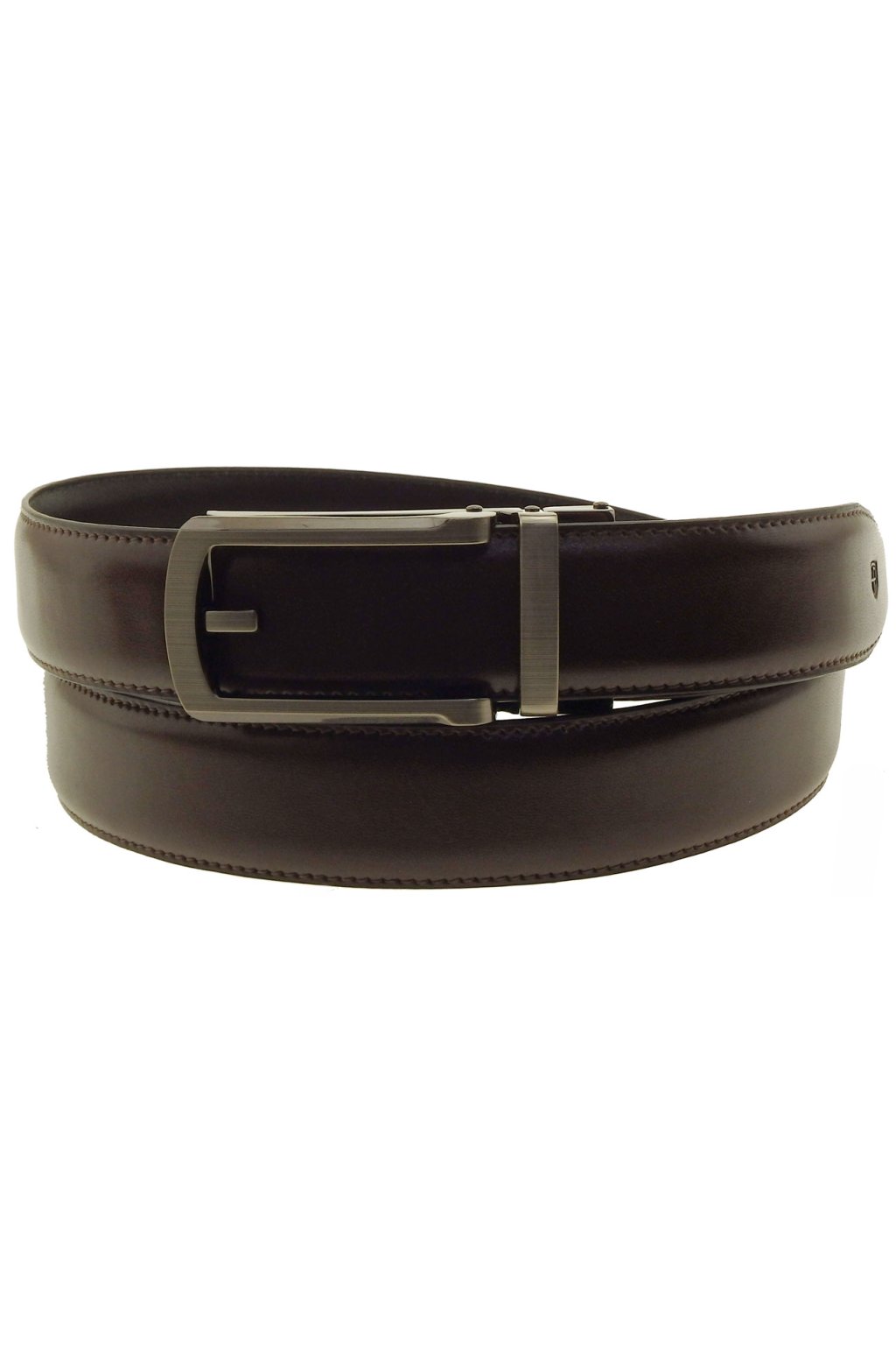 Luxusní pánský hnědý kožený opasek s automatickou přezkou - šířka 3,5 cm