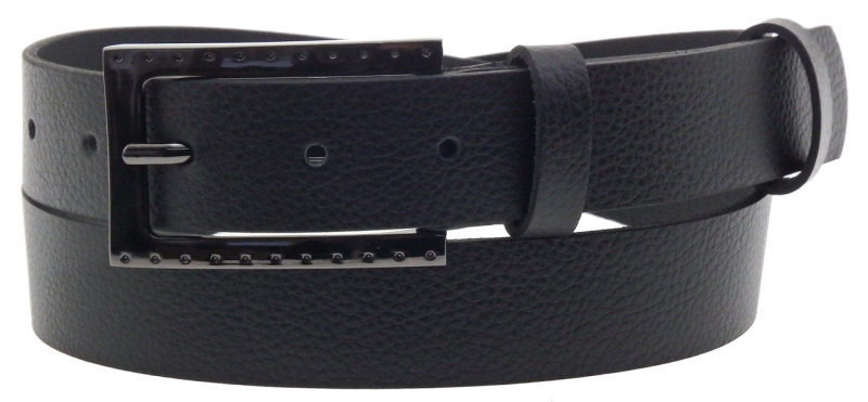 Elegantní 30mm široký kožený dámský opasek s luxusní nadčasovou sponou v trendy černé barvě má hladký upravený povrch kůže a tak jistě dokonale doladí každý dámský outfit.
