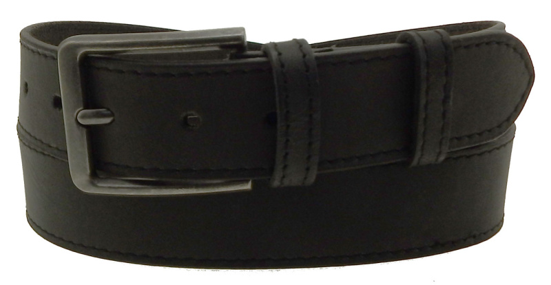 Trendy černý 40mm široký pánský kožený opasek má originální sponu a hladce upravený povrch kůže s prošitím. Tento pánský kožený opasek jistě dokonale doladí ke společenským i volnočasovým outfitům.